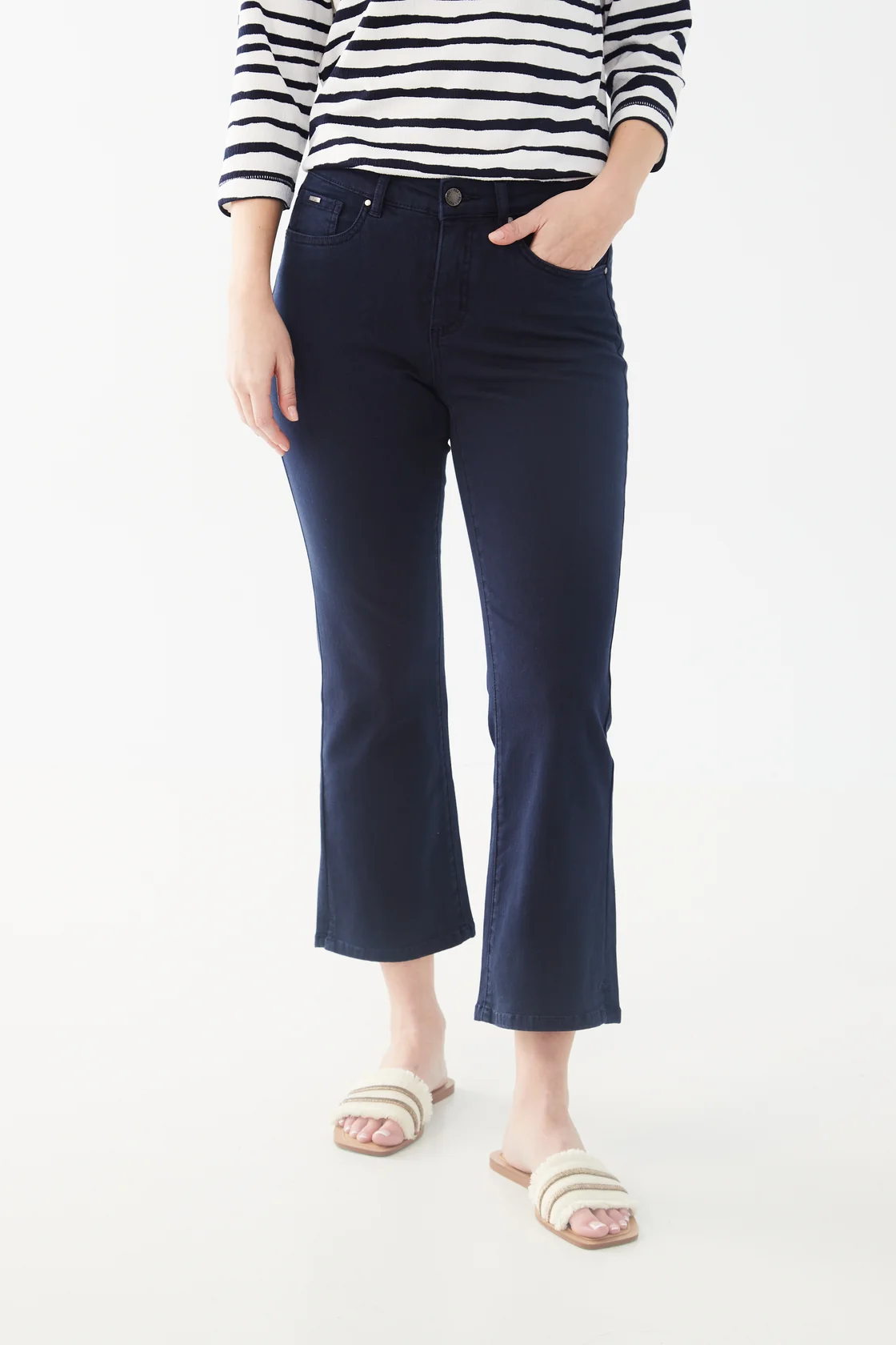 Made for women with balanced hip-to-waist proportions, the Olivia Boot Crop twill is made from soft cotton and has side slits at the hem, promising comfort all day long.