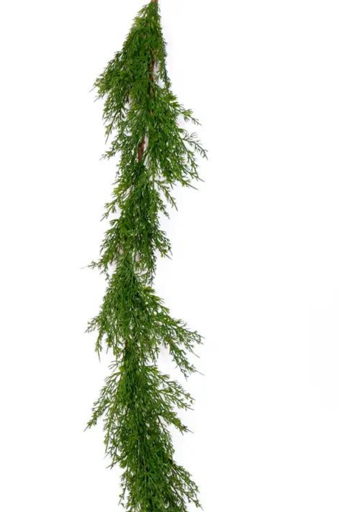Bring a touch of rustic charm to any holiday setting with this 4ft Evergreen Cedar Garland. Its rich green foliage is the perfect addition to your holiday decor, adding an element of warmth to your home.