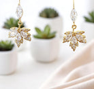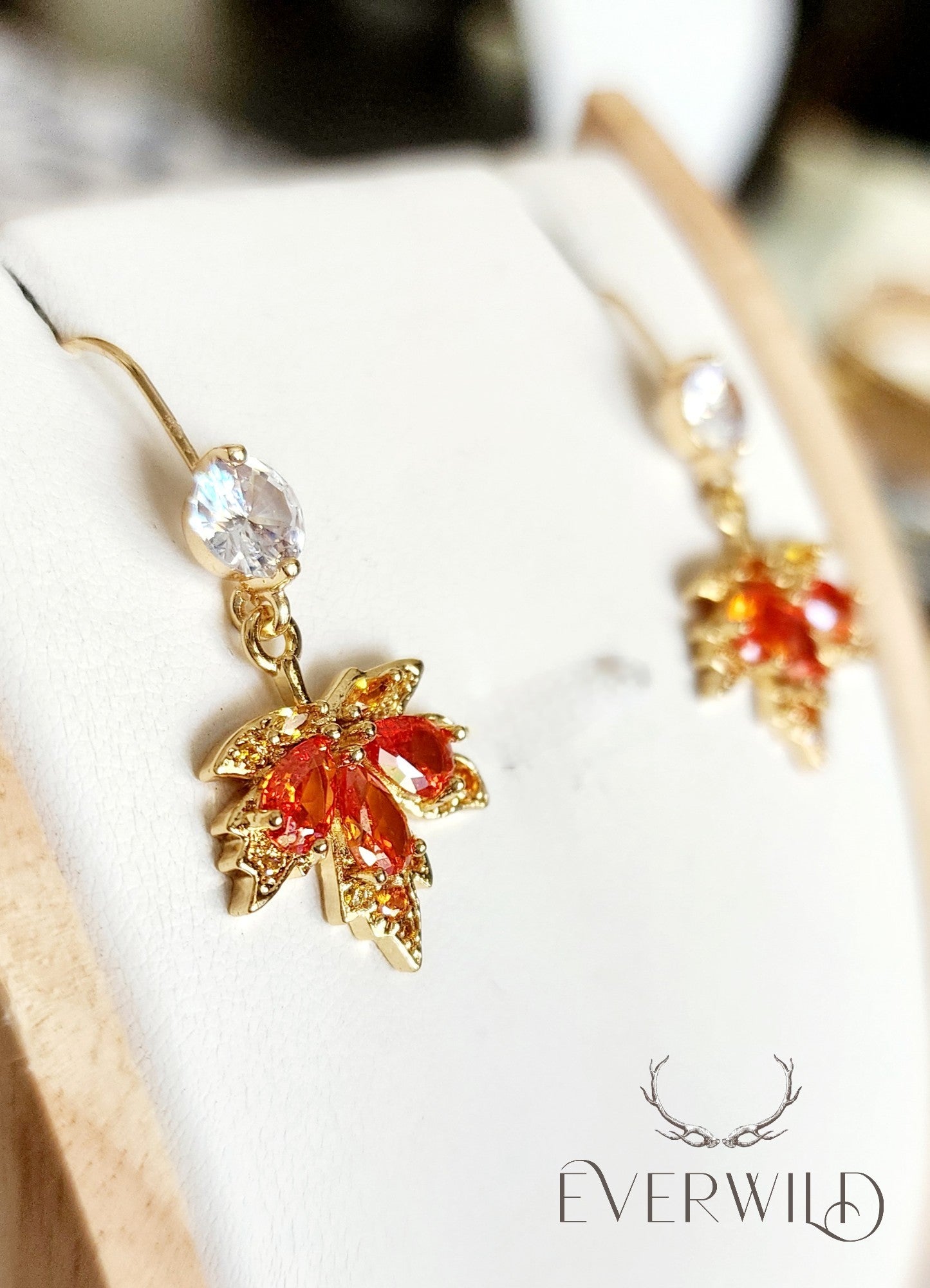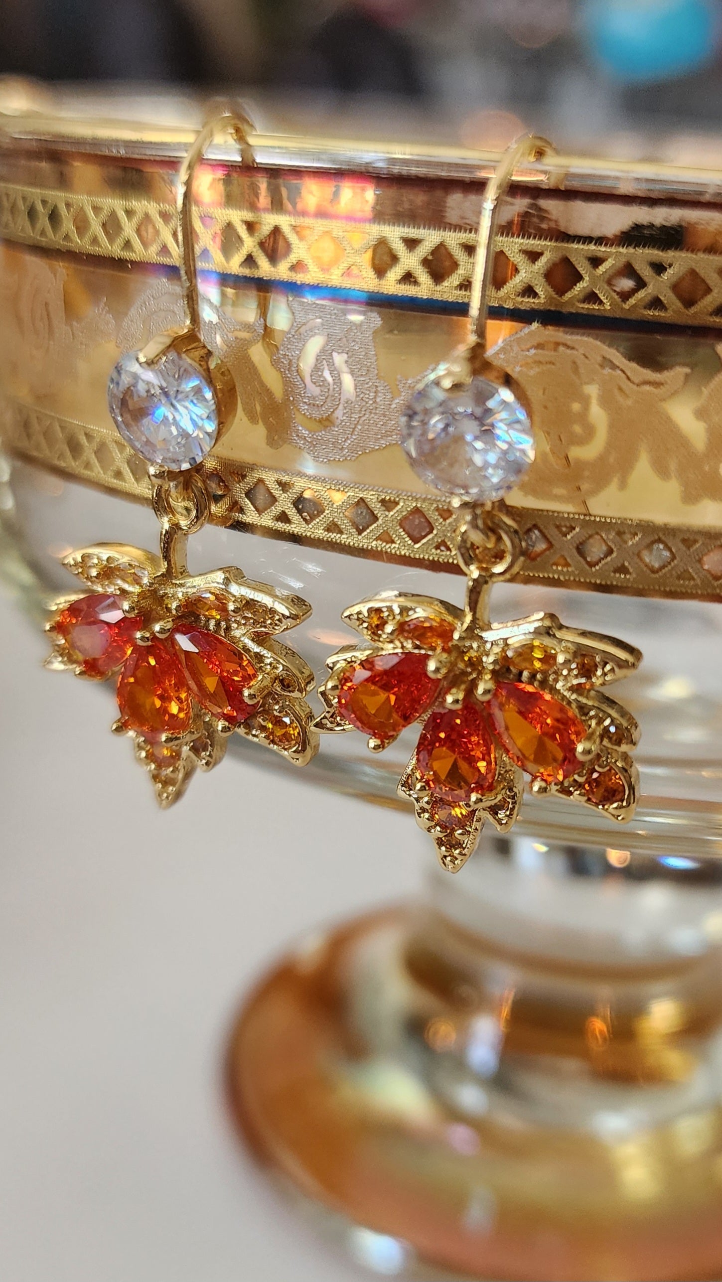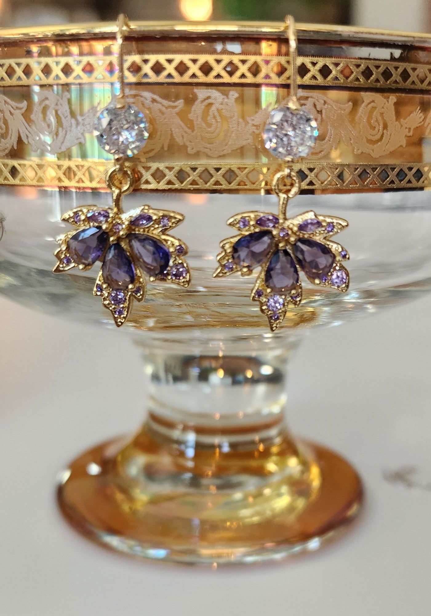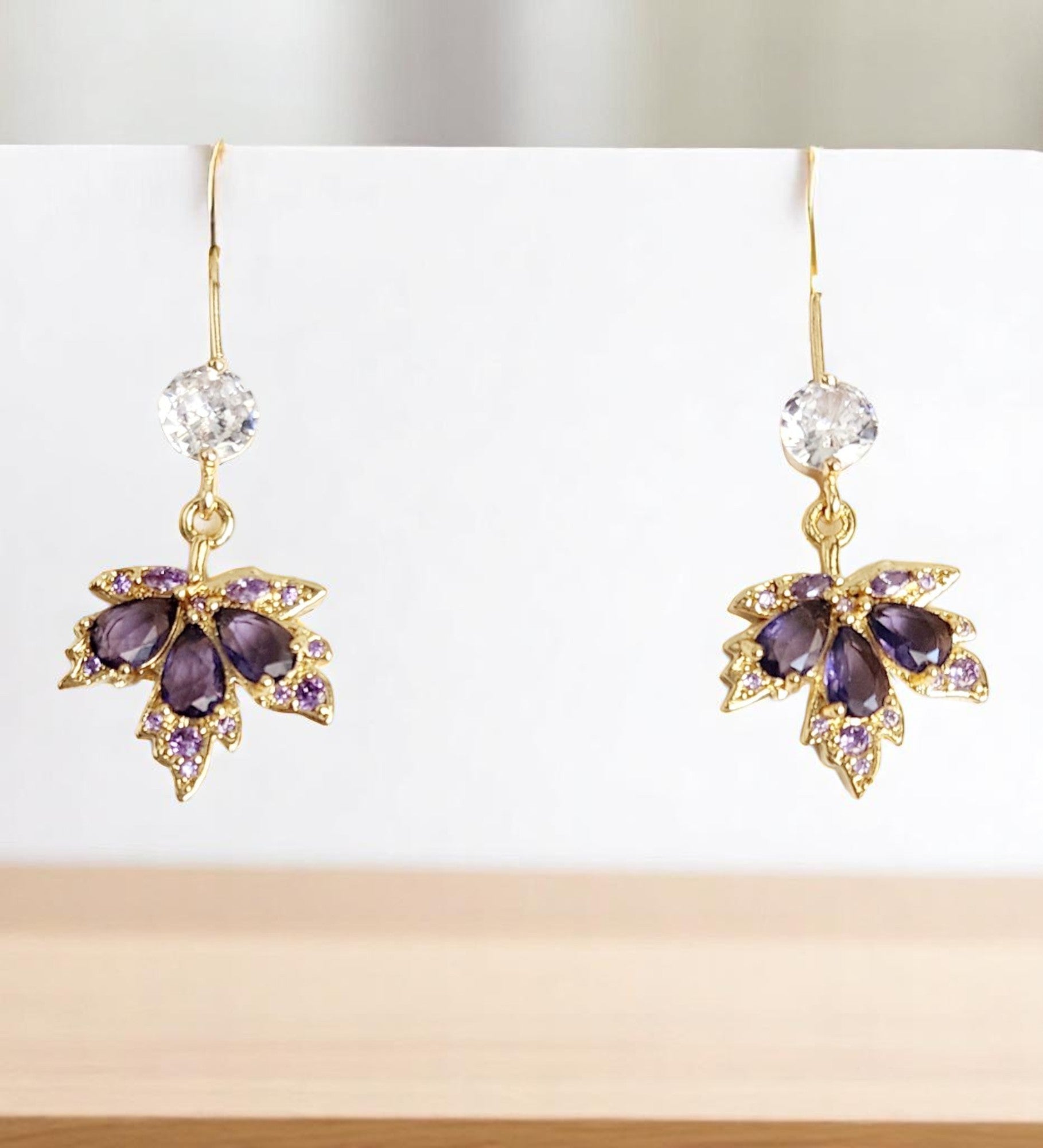 Add some sweet sparkle to your day with these oh, so easy-to-wear maple leaf earrings... Choose from crystal clear, plum purple or autumn orange - they are so sweet you may need all three colors! Gold plating, crystal details and a pretty clear dazzler on there as well for an extra touch of fanciness.