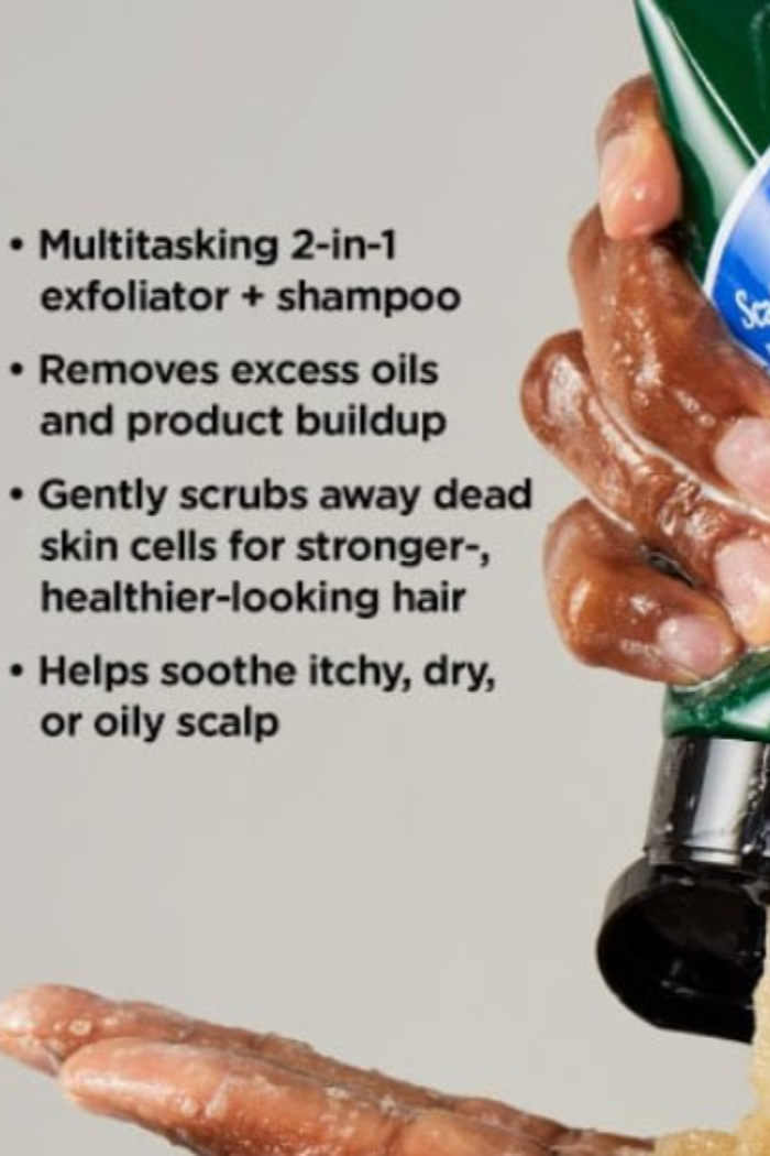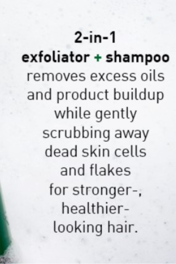 Multitasking 2-in-1 exfoliator + shampoo removes excess oils and product buildup while gently scrubbing away dead skin cells and flakes for stronger-, healthier-looking hair.