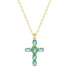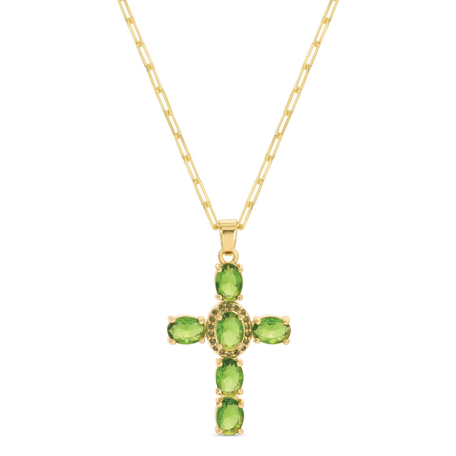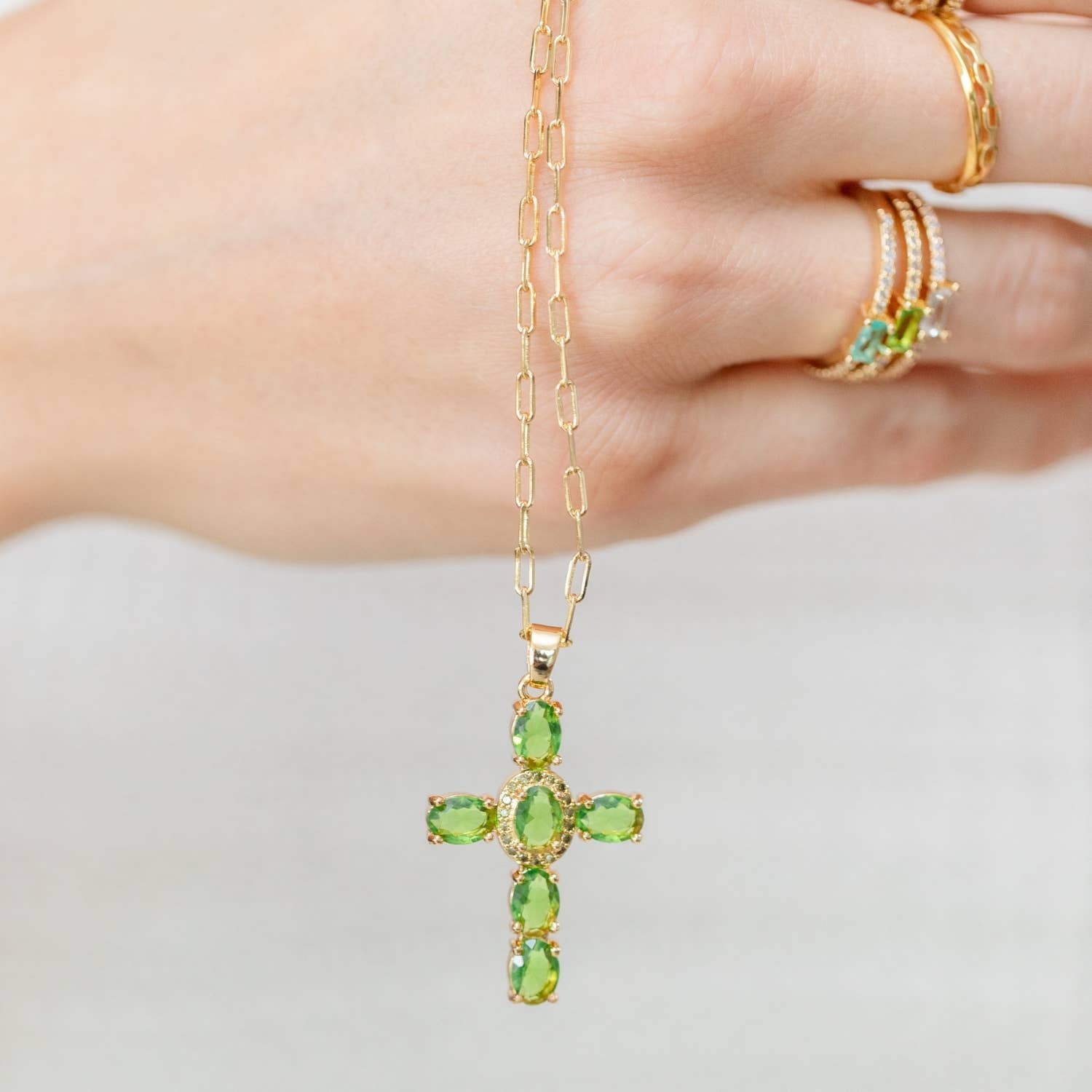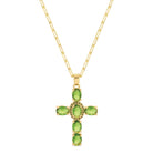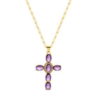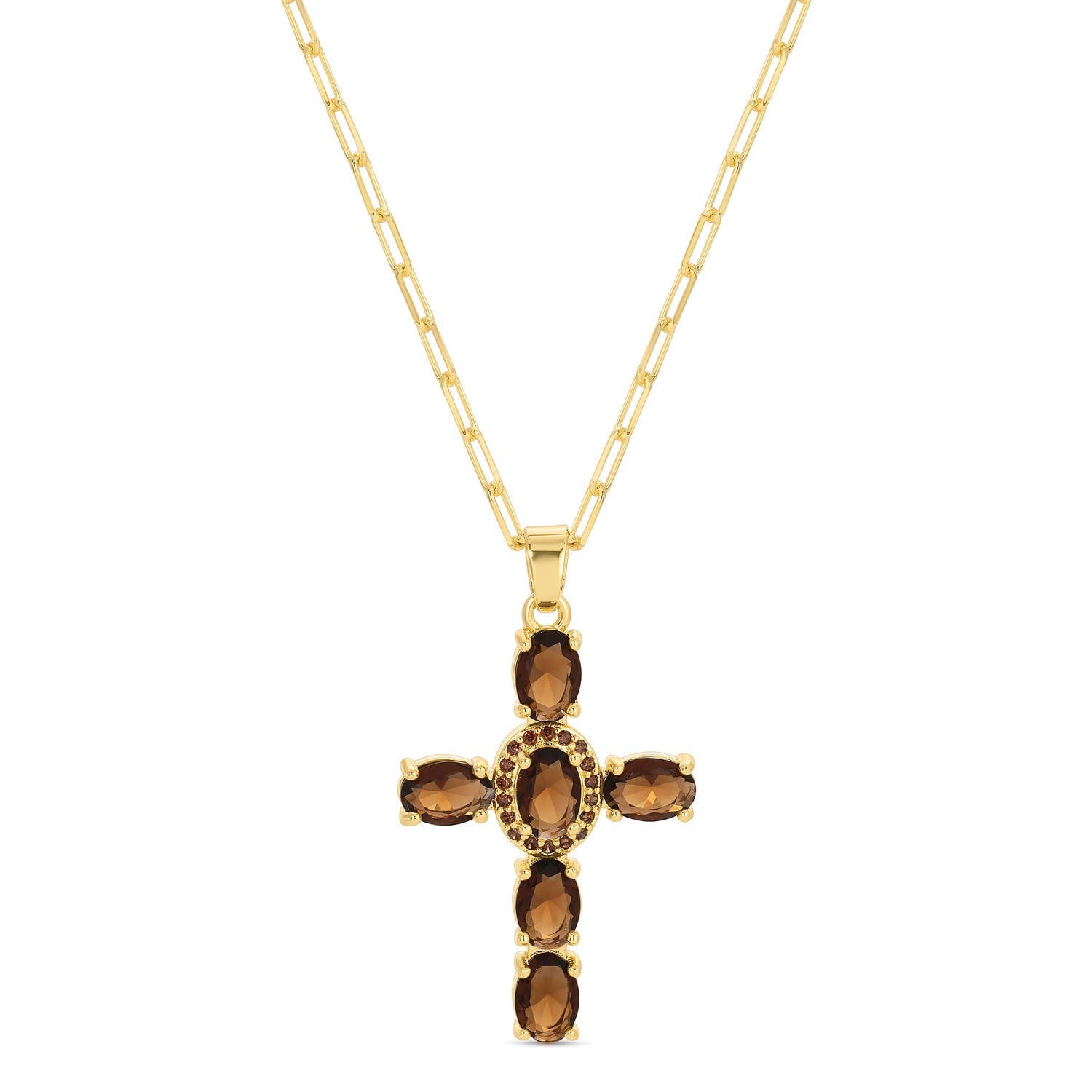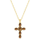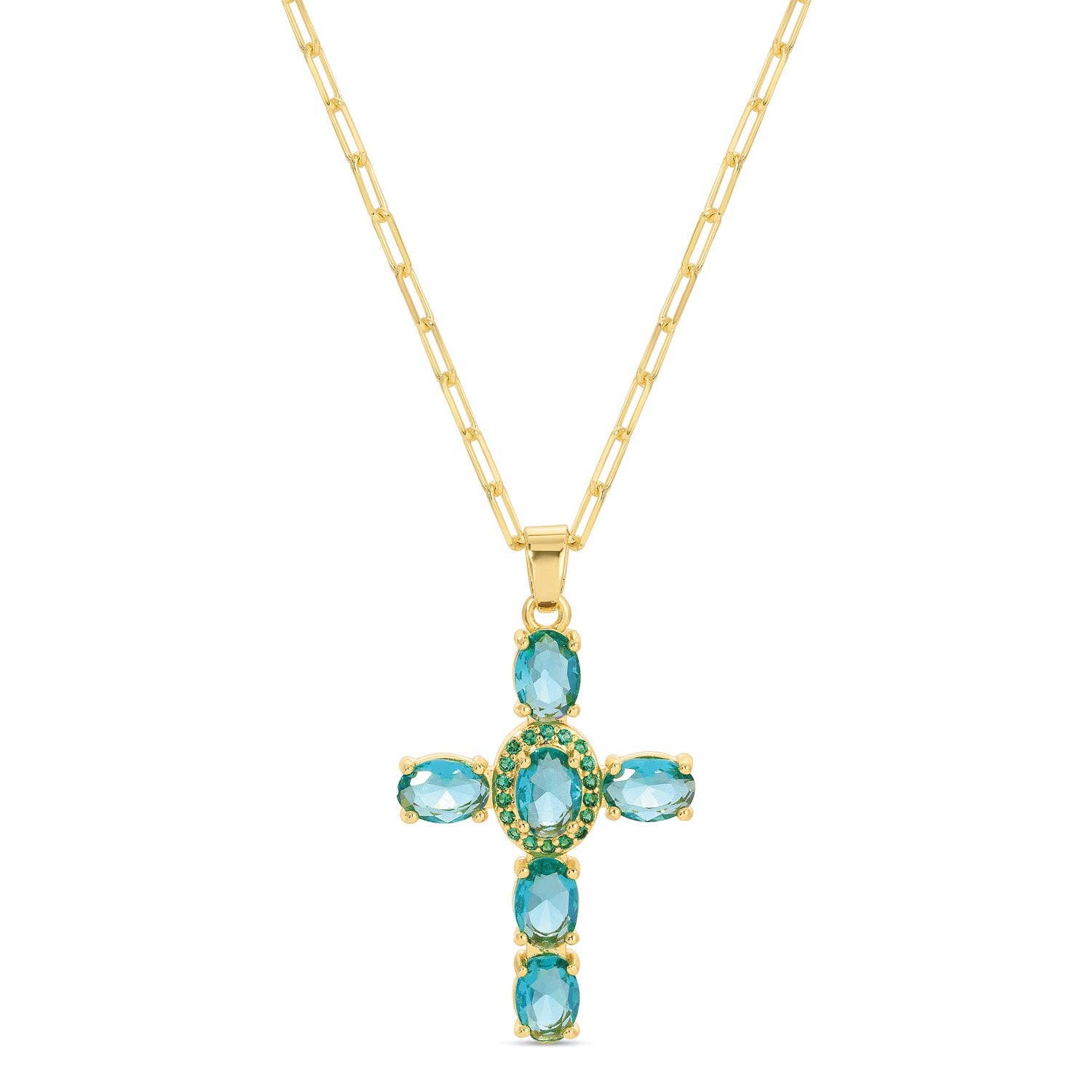 Large multi oval crystal cross pendant with pave accented center on thin paperclip chain