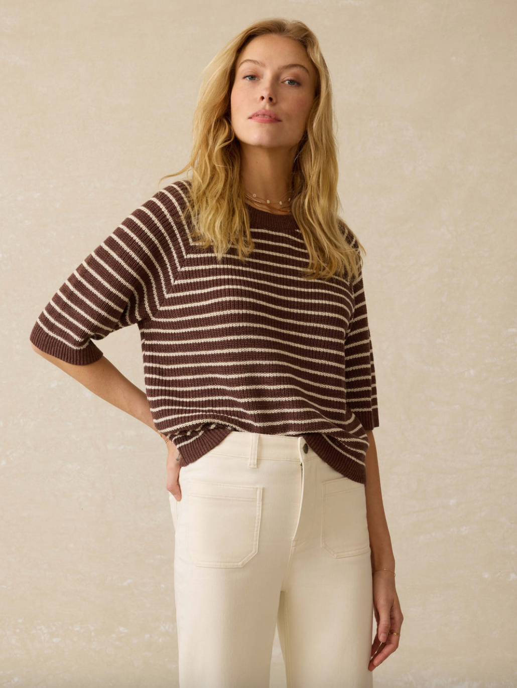 Expertly crafted from a soft, breathable linen-cotton blend, the Faherty Miramar Sweater Tee brings effortless sophistication to your wardrobe. With its relaxed fit and versatile design, this lightweight crewneck is perfect for everyday wear. Featuring rib detailing and elbow-length sleeves, it offers just the right amount of detail for a put-together look.