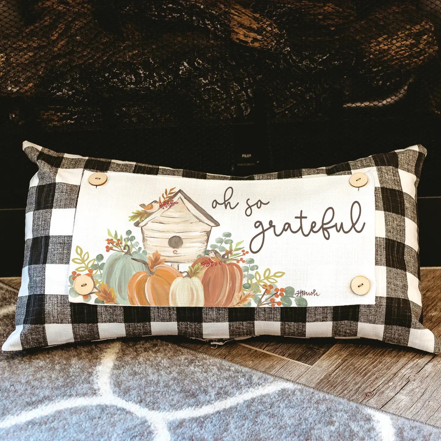 Fall Pumpkin Birdhouse "Oh So Grateful" Pillow Swap - Lucky Bird