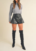 Upgrade your wardrobe with these must-have faux leather shorts! Perfect for those looking for trendy leather shorts, high-waisted flare shorts, or stylish fall outfits. Shop now at Evercado!