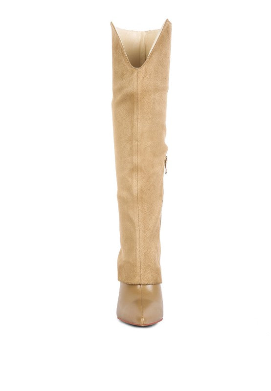 These fold-over styled boots are perfect for any outfit, They're made with a soft, comfortable fabric that will keep your feet warm all day long. The boots are super stylish, which will make you stand out in a crowd. Whether you're headed to the office or out on the town, these boots are a must-have for your wardrobe.