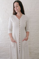 Our long 3/4 sleeve Fiona Dress is a long time favorite so we brought it back in a natural linen.