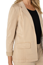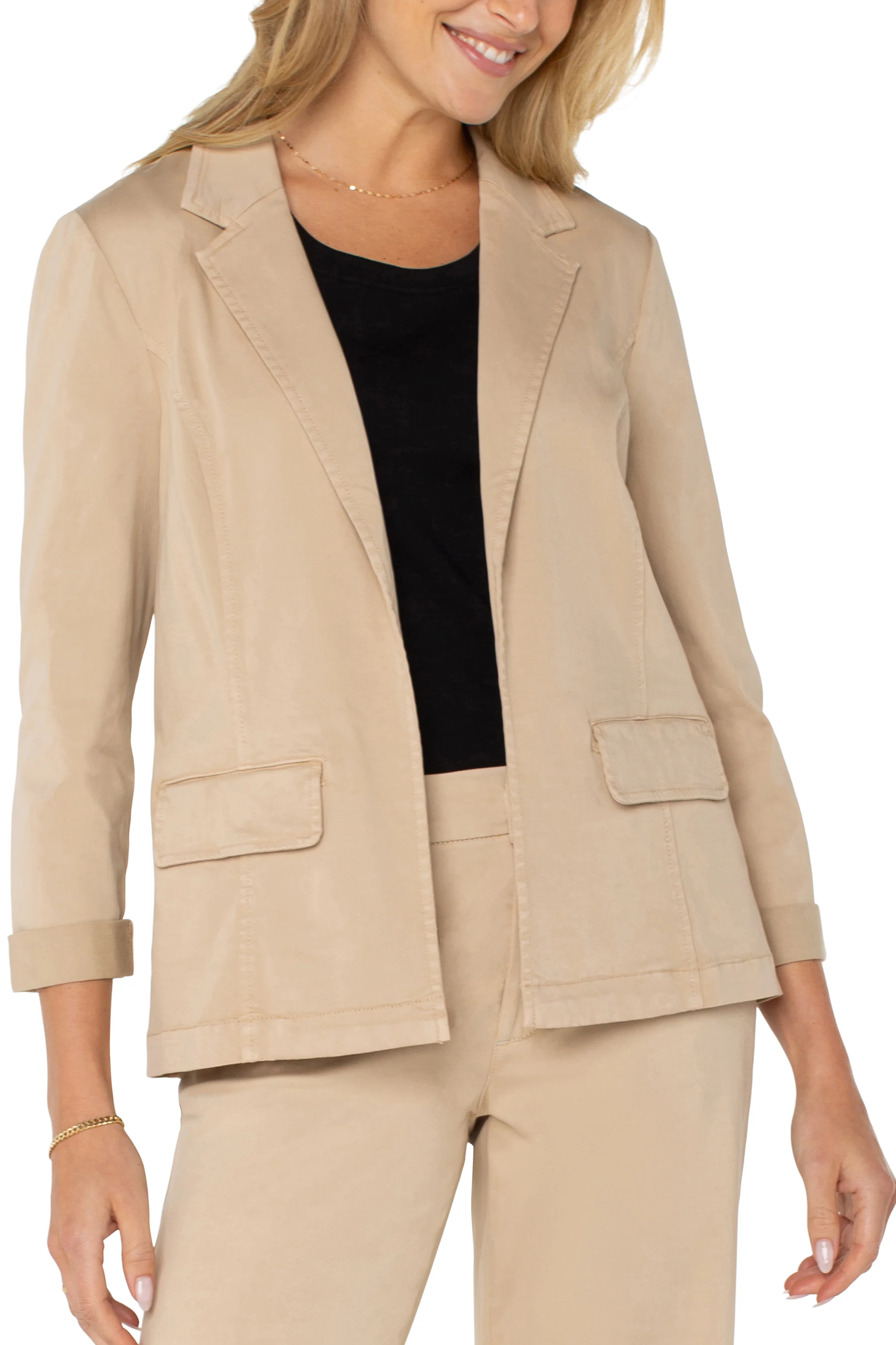 Stay polished with our fitted twill blazer, made from soft, stretchy fabric for all-day comfort. Featuring a sleek fit and front welt pockets, it’s perfect for dressing up with trousers or keeping it casual with denim and a tee.