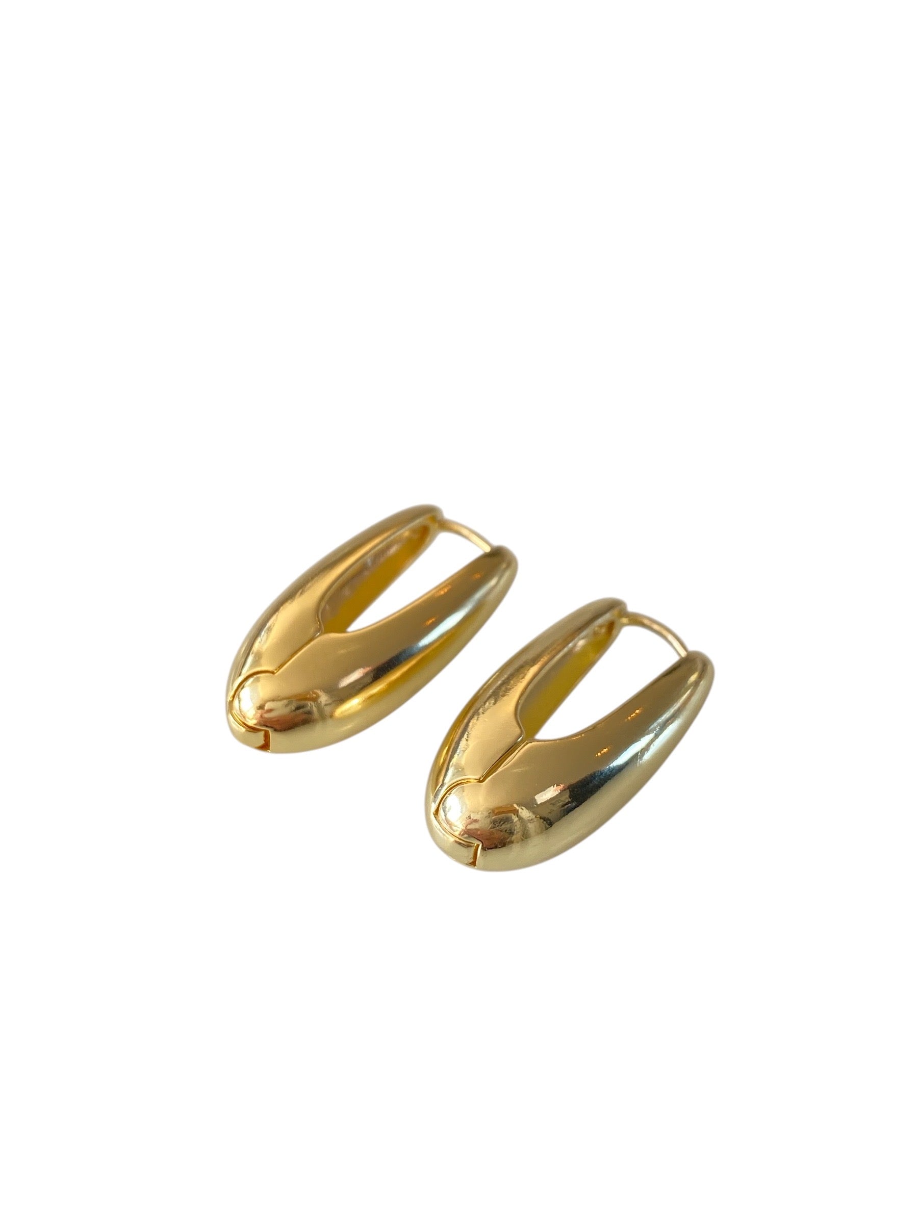 Their unique shape and polished gold finish create a striking balance between modern minimalism and timeless elegance.