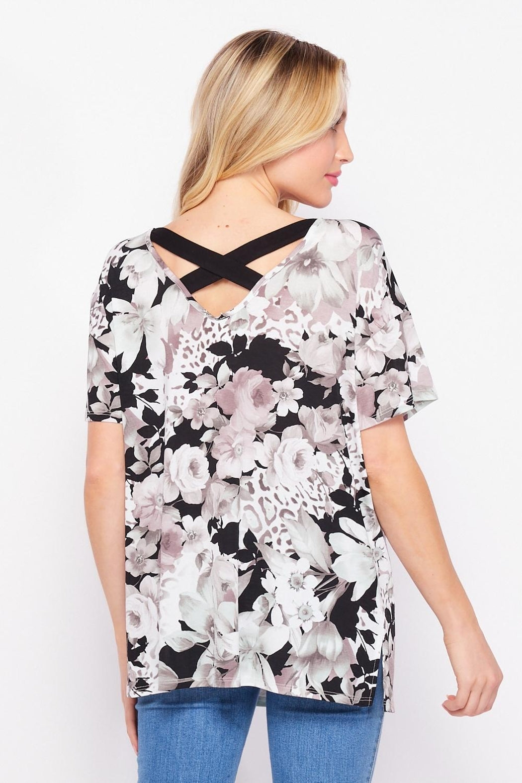 How adorable is this top. It has a nice floral pattern with a hint of a cheetah print to it. It also has a nice detail in the back with the criss cross straps. It also has slits up the side for a little extra room. You can pair it nicely with jeans, white pants, or gray pants. You could even throw a cardigan or jean jacket over it for a whole new look.