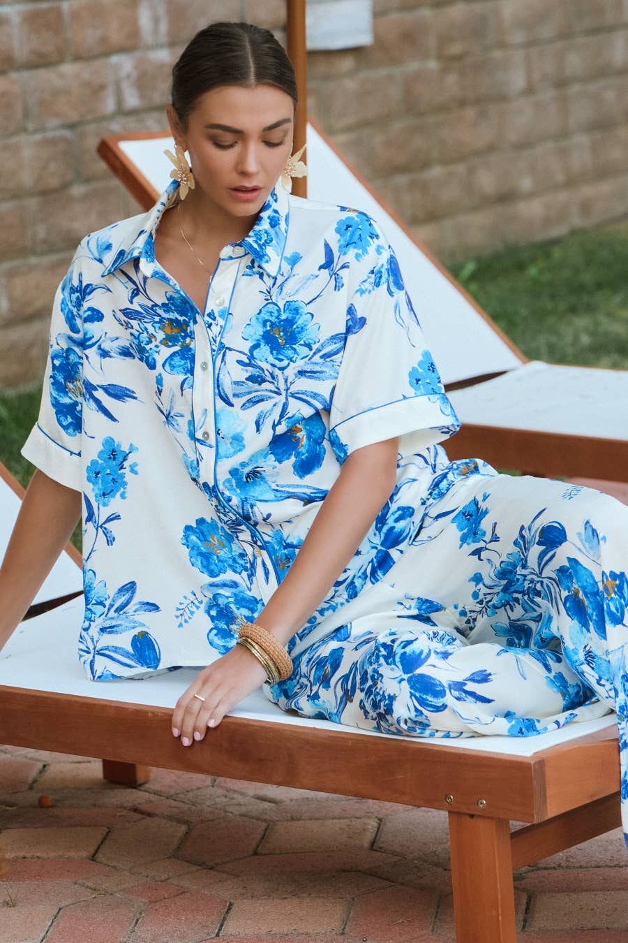 Step into elegance with our Floral Crushed Satin Button Up. Perfect for a night out, this PJ style shirt features a stunning floral print and is made from crushed satin for a luxurious feel. Don't forget to complete your look with the matching pants. Elevate your style and make a statement with this must-have piece!