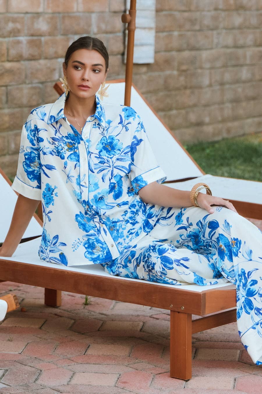 Floral Crushed Satin Button Up