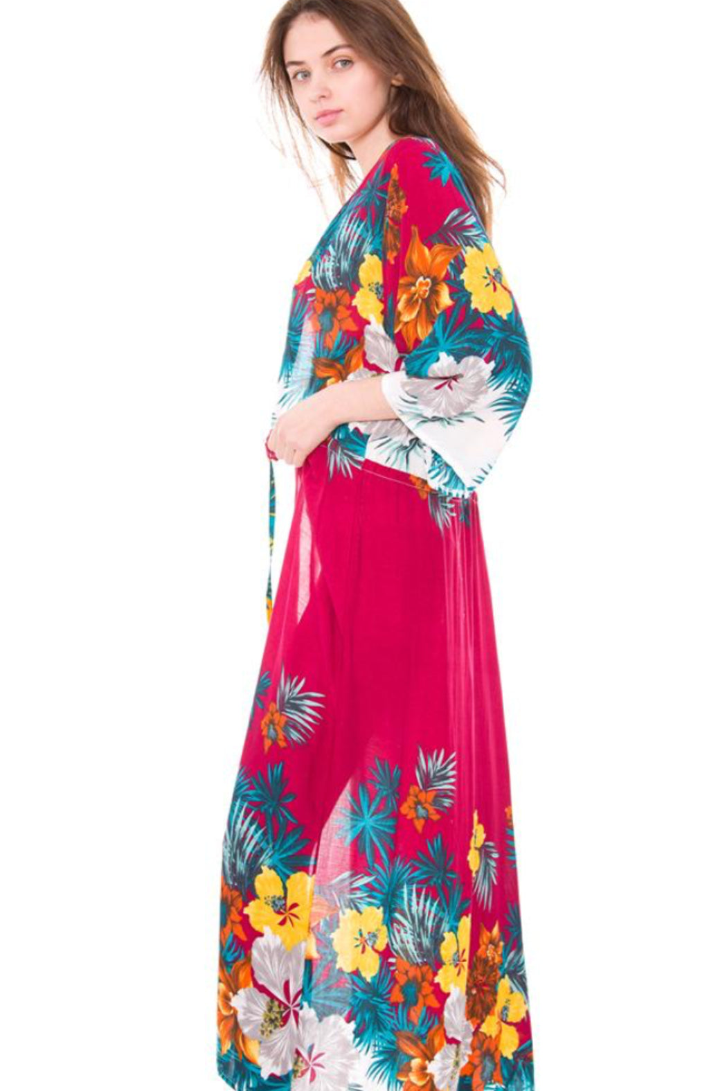 Stunning Long Floral Robe. One Size Fits Most. Drawstring Belt.