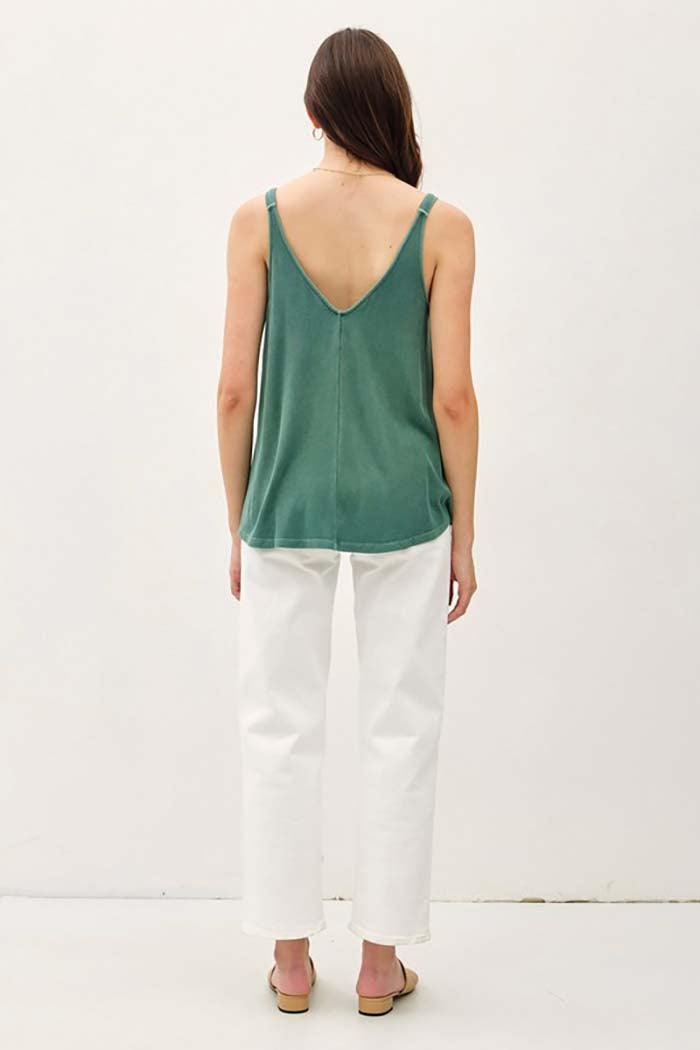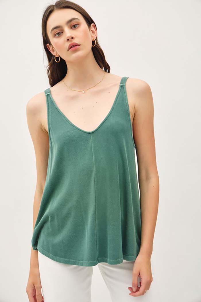 Flowy V Neck Tank Top. FLOWY. V-NECK. KNIT. TANK. RIB DETAILS. LIGHTWEIGHT. SHOULDER STRAPS. SEAM DETAILS ON CENTER FRONT AND CENTER BACK. Fabric Contents 92%RAYON 8%SPAN. Made in China.
