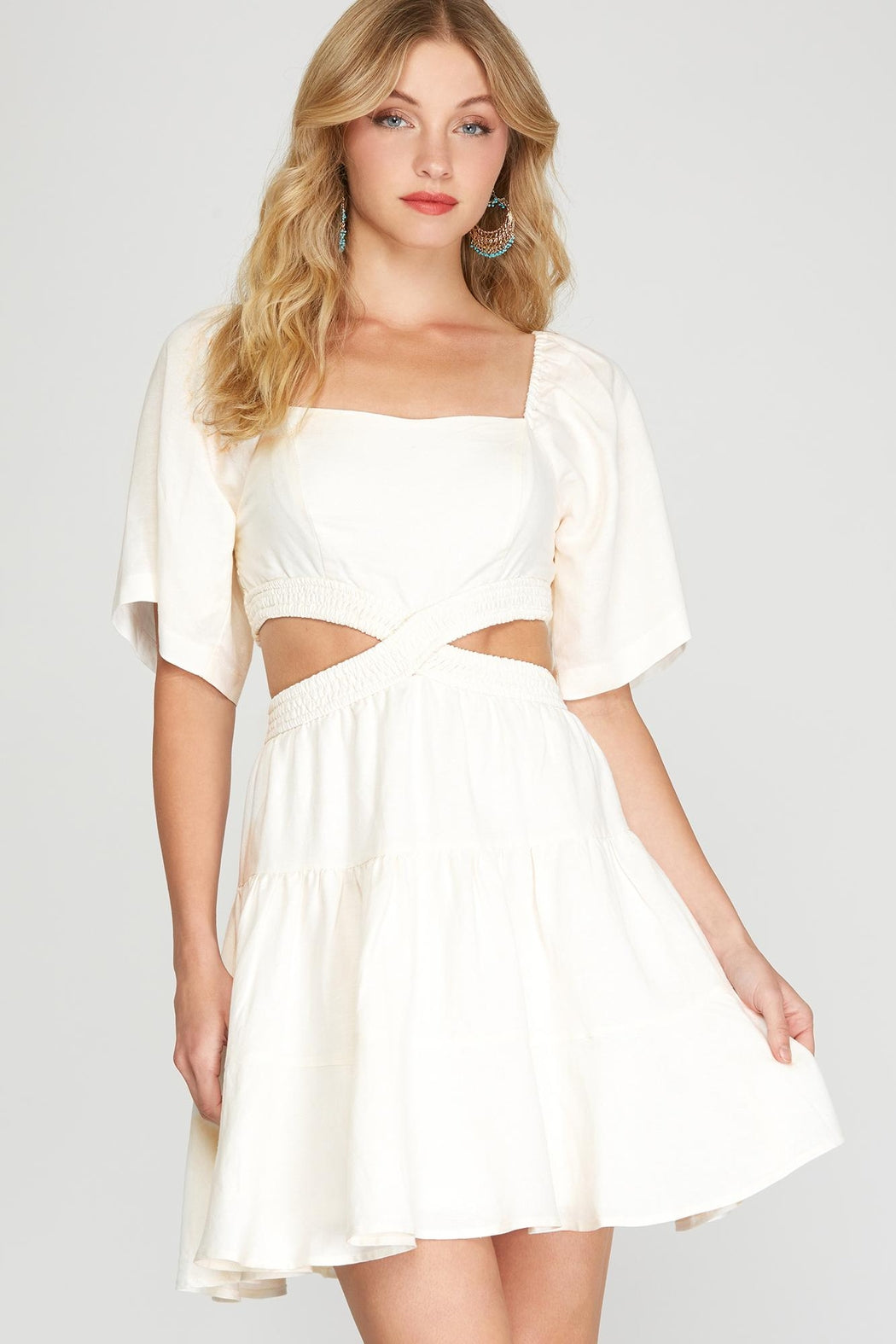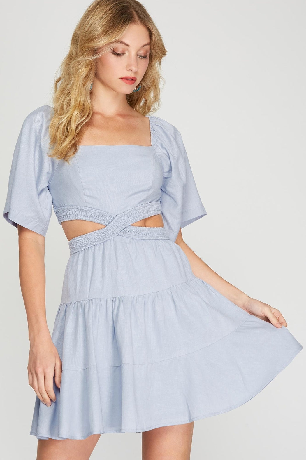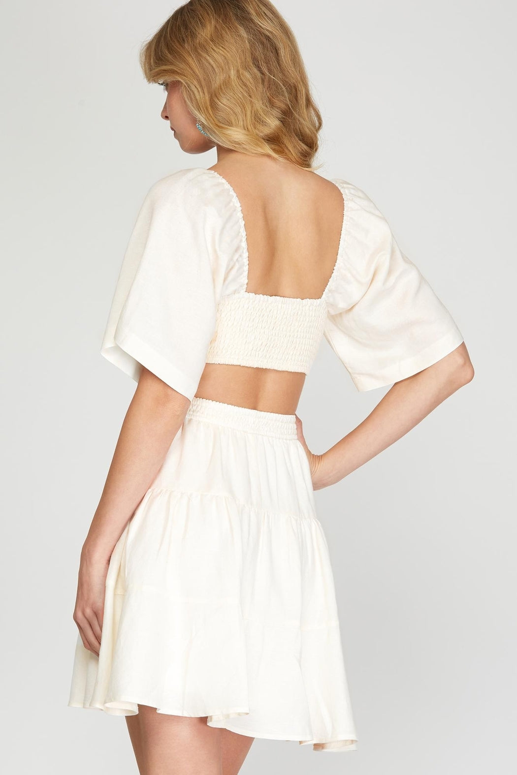 Flutter-Sleeve Open-Waist Tiered-Dress