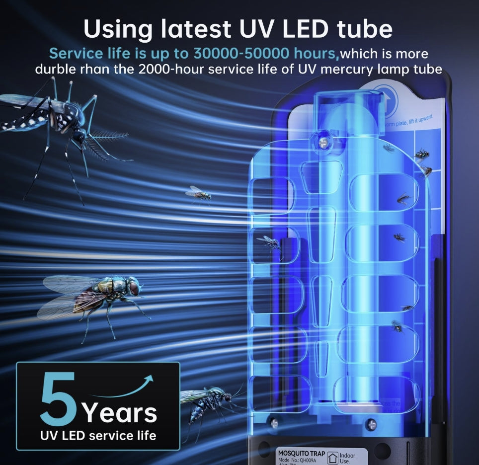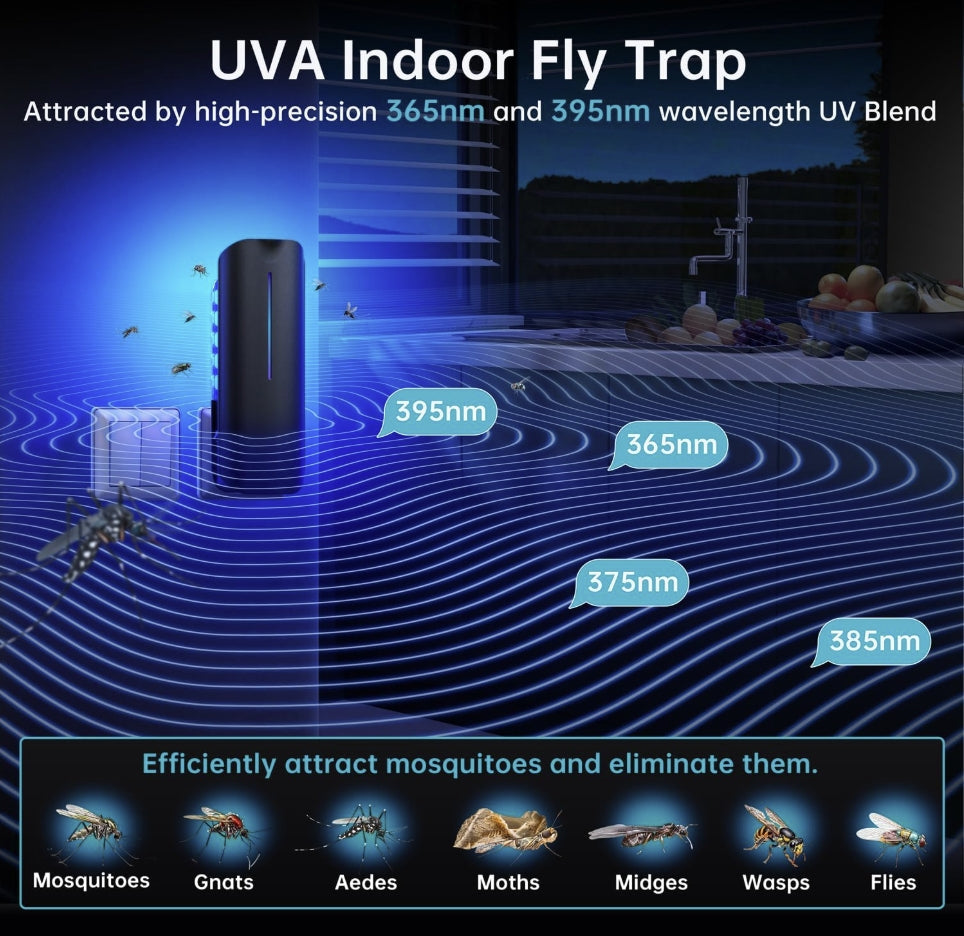 - Works Fast: The fly traps featured with double wavelengths of 365-395 NM UV light that starts working immediately to attract, trap, and kill flies, fruit flies, moths, gnats