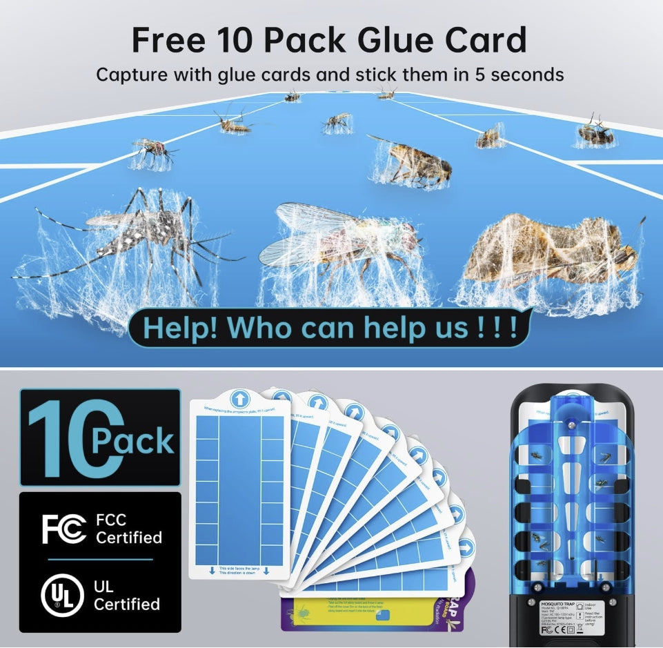 - 5 GLUE BOARDS + 9W UV BULBS: We have added to Fly Trap set 5 Glue Boards, to ensure that you have refills for a longer period of time. and the 9W UV light naturally attracts flying insects to the trap to protect large rooms