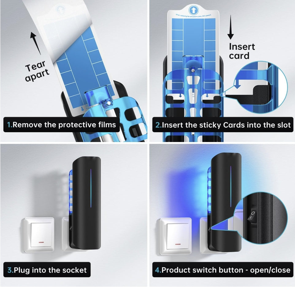 - Easy to Use and Reusable: Simply insert a glue card and plug the trap into an electrical outlet. Refill glue cards are available for continued insect protection."REMEBER FOR RESULTS DARKEN THE ROOM FROM ALL OTHER LIGHT SOURCES"