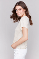 Foil Print Sleeve Dolman Top