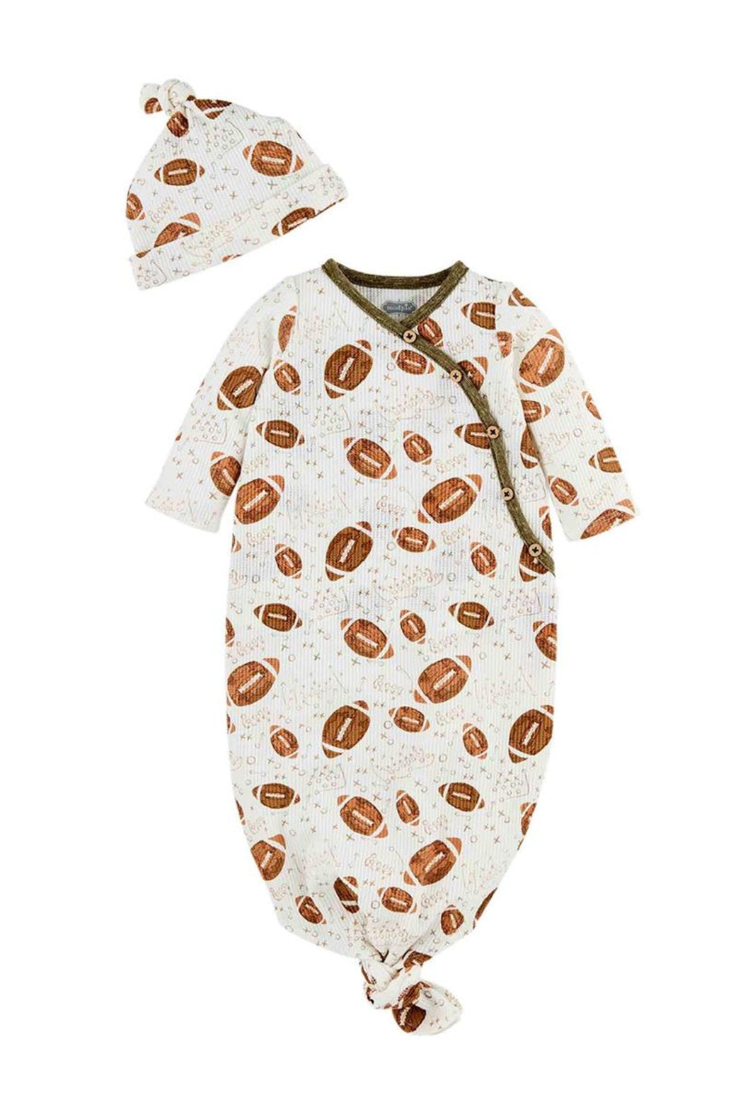 2-piece set. Waffle weave knot hem sleep gown with coconut wood button placket. Comes with coordinating top knot hat