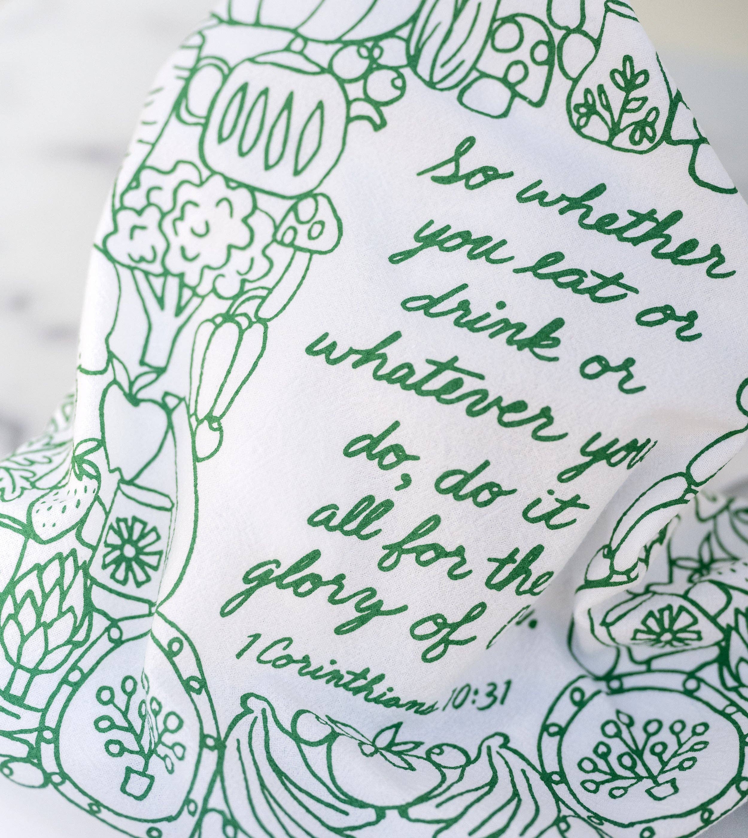 For the Glory of God Scripture Tea Towel — 1 Corinthians 10