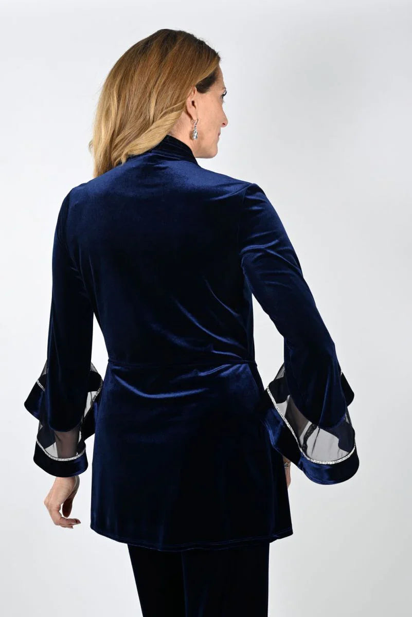 This cardigan with 3/4 sleeves and chiffon insert detailing exudes timeless charm with a touch of elegance. The delicate chiffon inserts and silver embellishments add a subtle yet captivating flair, making this cardigan a versatile and stylish addition to your wardrobe.