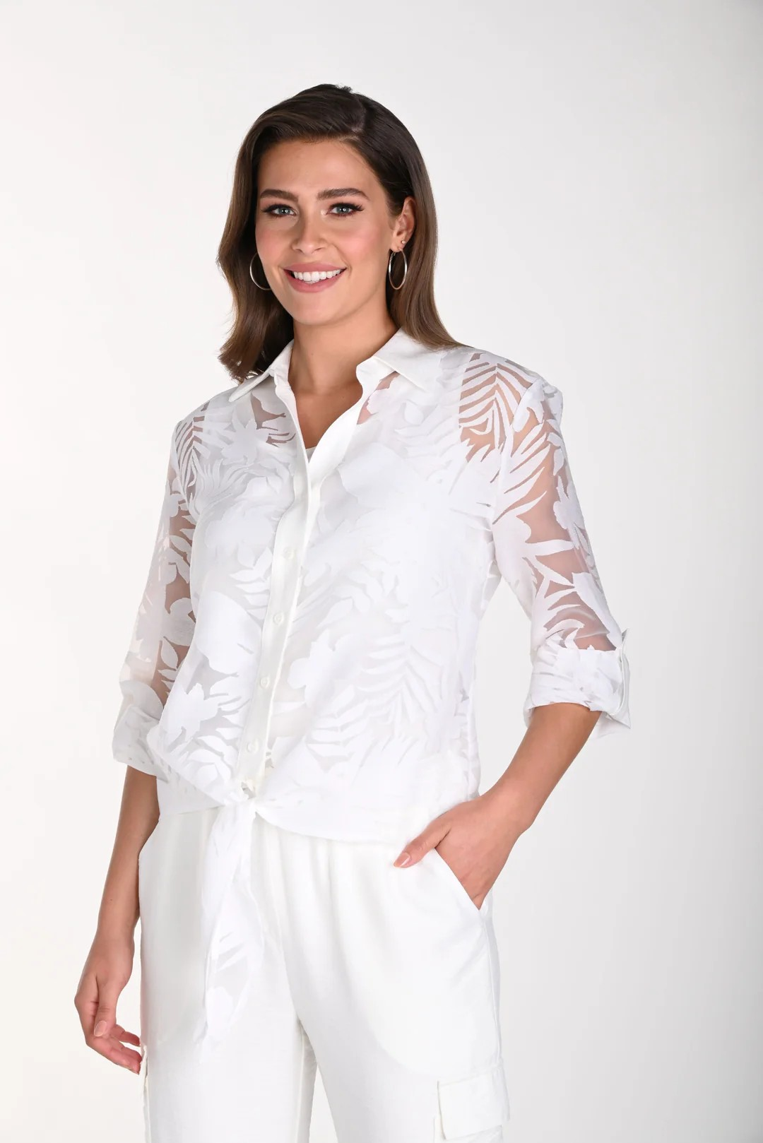 Elevate your style with our Off-White Floral Print Blouse by Frank Lyman! This sophisticated top features a charming floral pattern, adding a touch of whimsy to the classic shirt silhouette. Perfect for casual outings or semi-formal occasions, its versatile design will effortlessly elevate any ensemble.