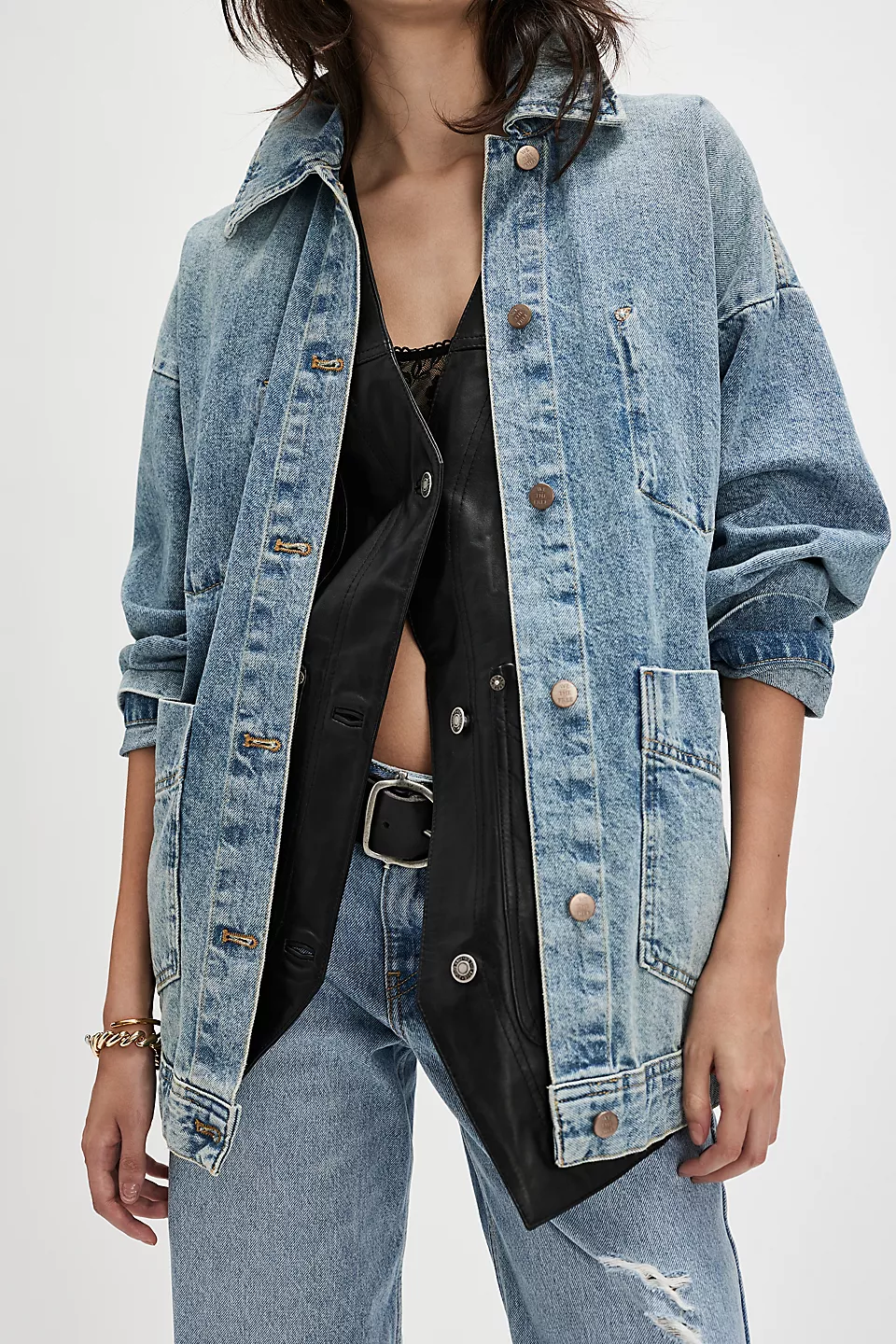 Get the best of both worlds with the traditional yet unique Free People Avery Denim Jacket. This oversized, slightly structured chore jacket features patch pockets and a perfect washed finish. Stay on trend with a twist!