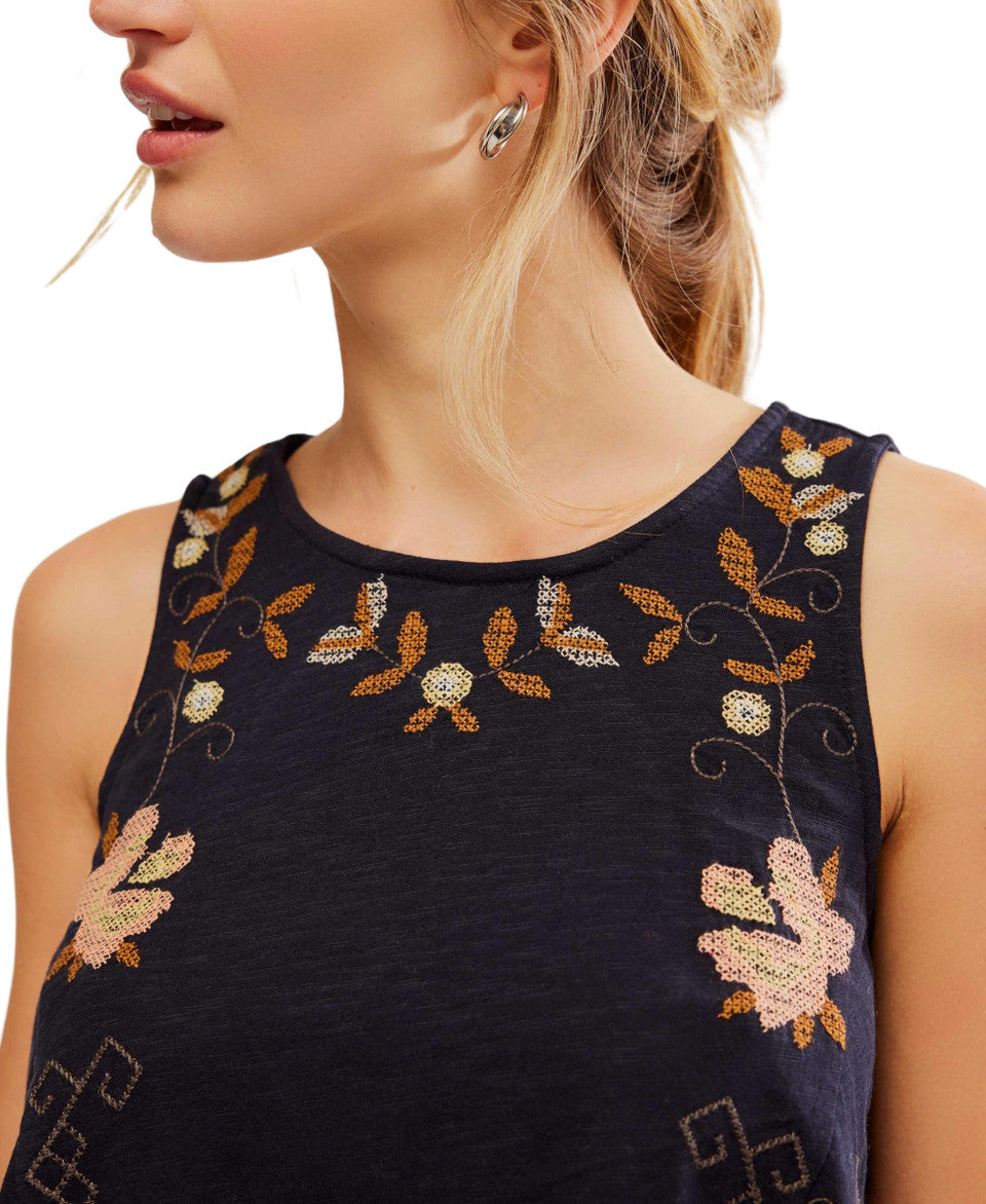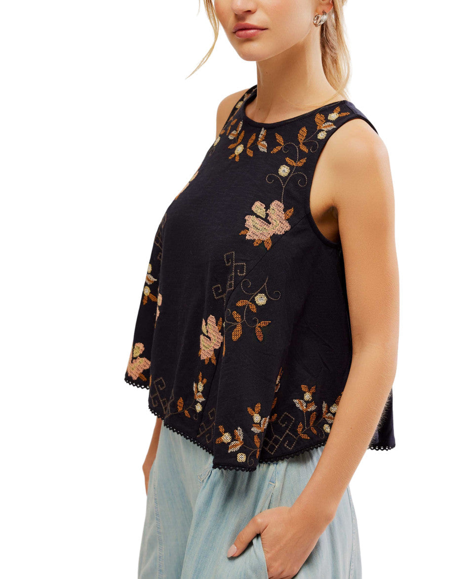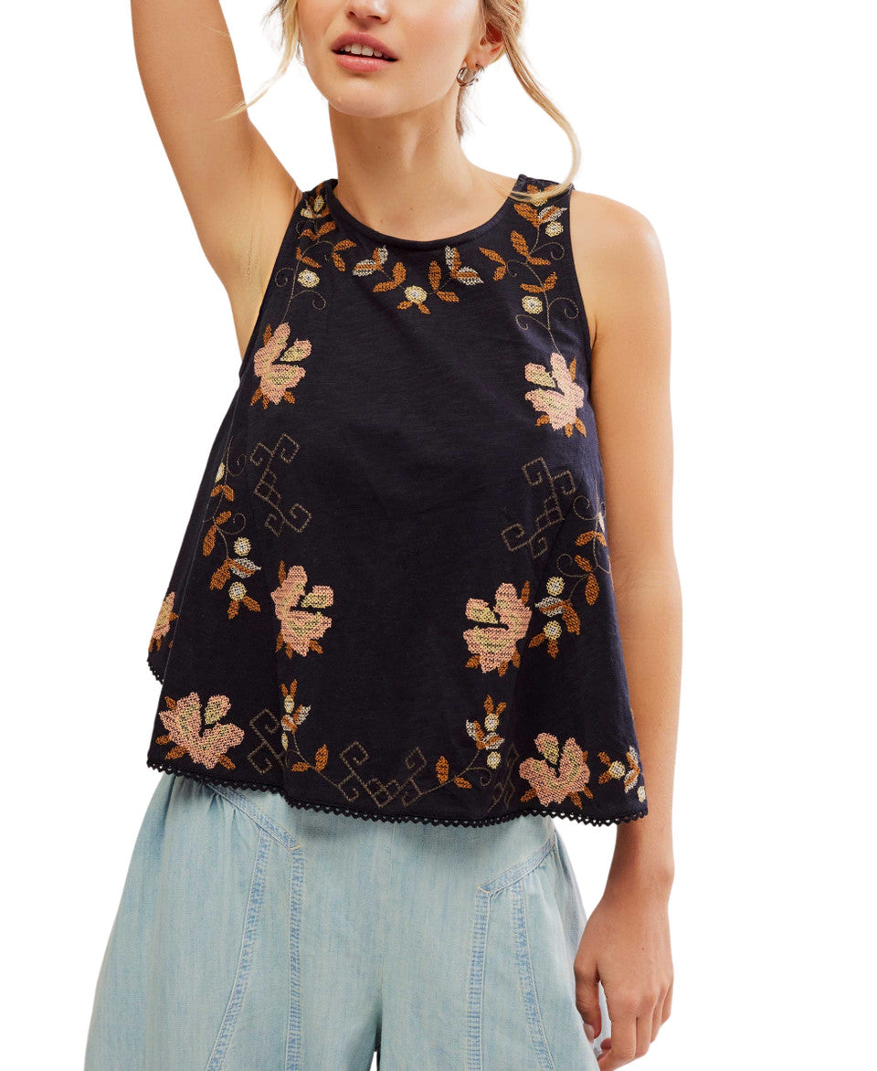 Elevate your summer style with the Free People Fun & Flirty Embroidered Top. Made with soft cotton fabric, this slightly cropped, billowy top features delicate floral detailing and a scoop neckline, while the cutout back adds a playful touch. Perfect for dressing up or down, this top will become a staple in your wardrobe.