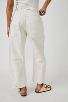 Elevate your denim game with Free People's Moxie Jeans. These low-slung, slouchy fit jeans feature distressed detailing and paint splatter for a statement-making edge. The contrast drawstring waist and oversized patch pockets add a cool touch. Made to stand out, these jeans from the We The Free collection are a must-have for any fashionable wardrobe.
