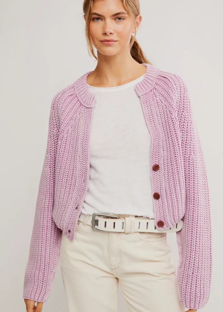 Wrap yourself up in timeless style with our Free People Sweet Nothing Cardi. This chunky knit cardigan features a slouchy, cropped fit and defined neckline, making it a cozy and stylish addition to your sweater collection. The button-front closure and textured detailing add dimension to any outfit. Perfect for layering or wearing on its own, this cardigan will elevate any casual look.