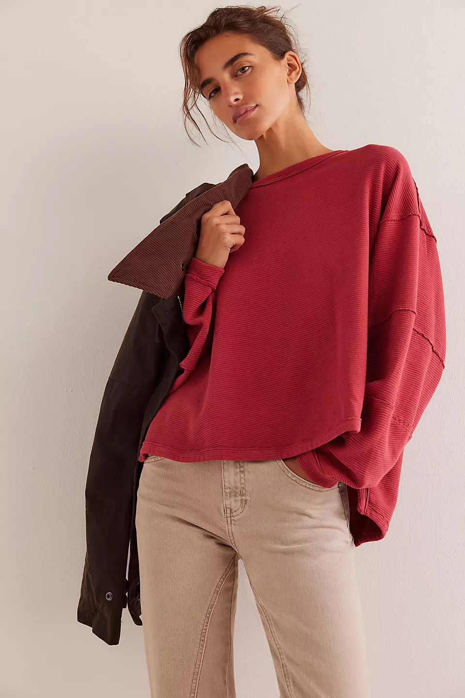 Elevate your t-shirt game with this long-sleeve from Free People's We The Free collection. Featuring a comfortable ribbed fabric and slouchy silhouette with defined seams and a scoop-neck, this tee is anything but basic. Total Eclipse Tee: it's a total must-have.