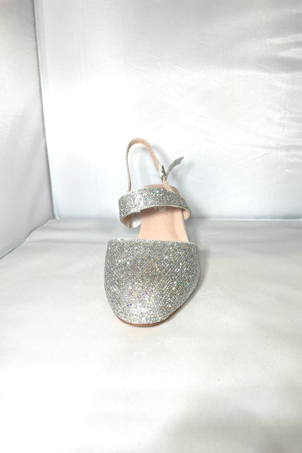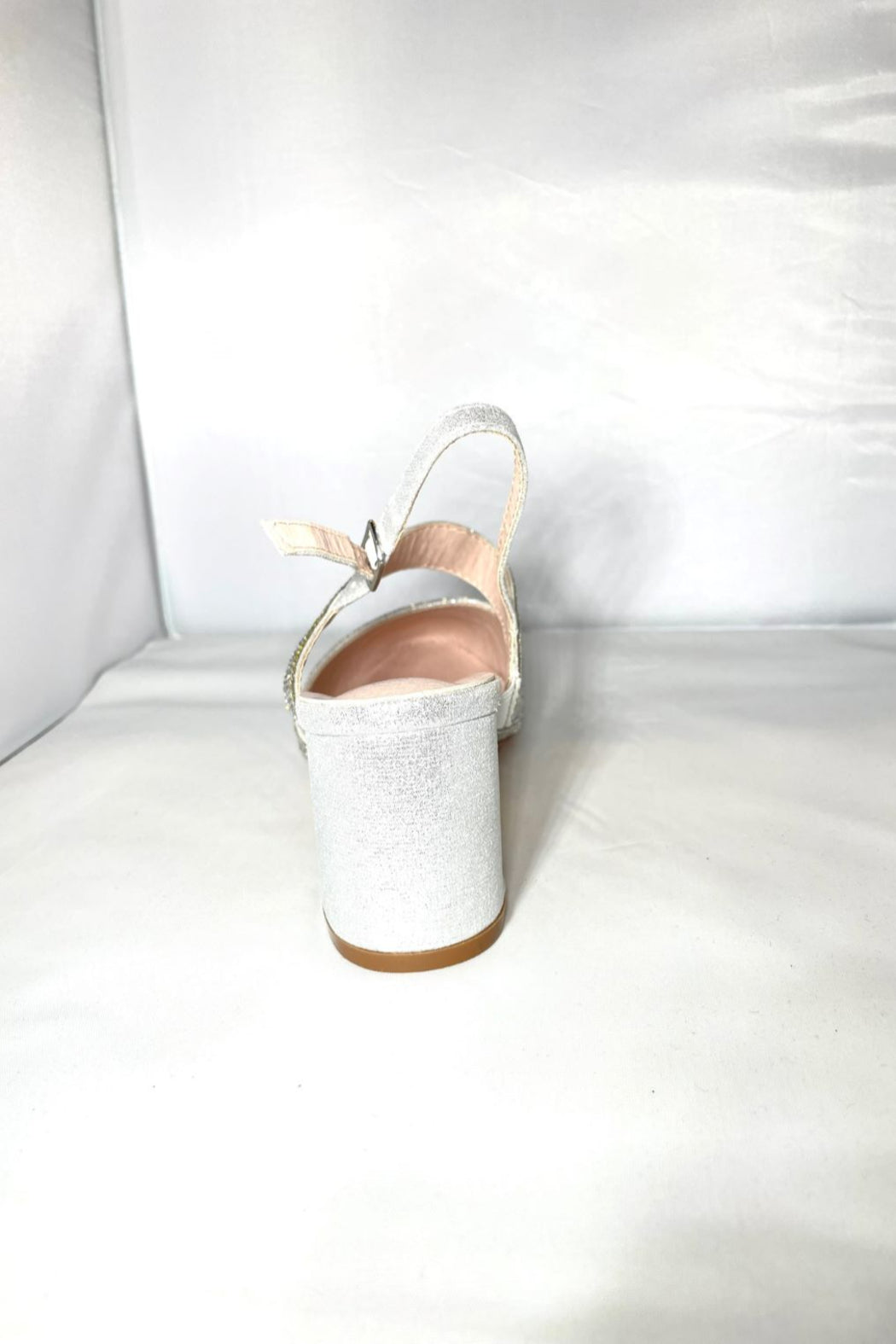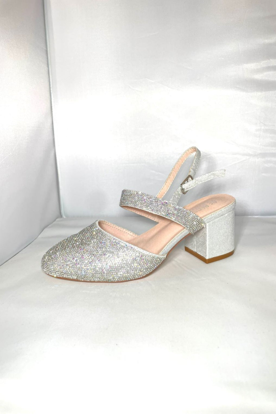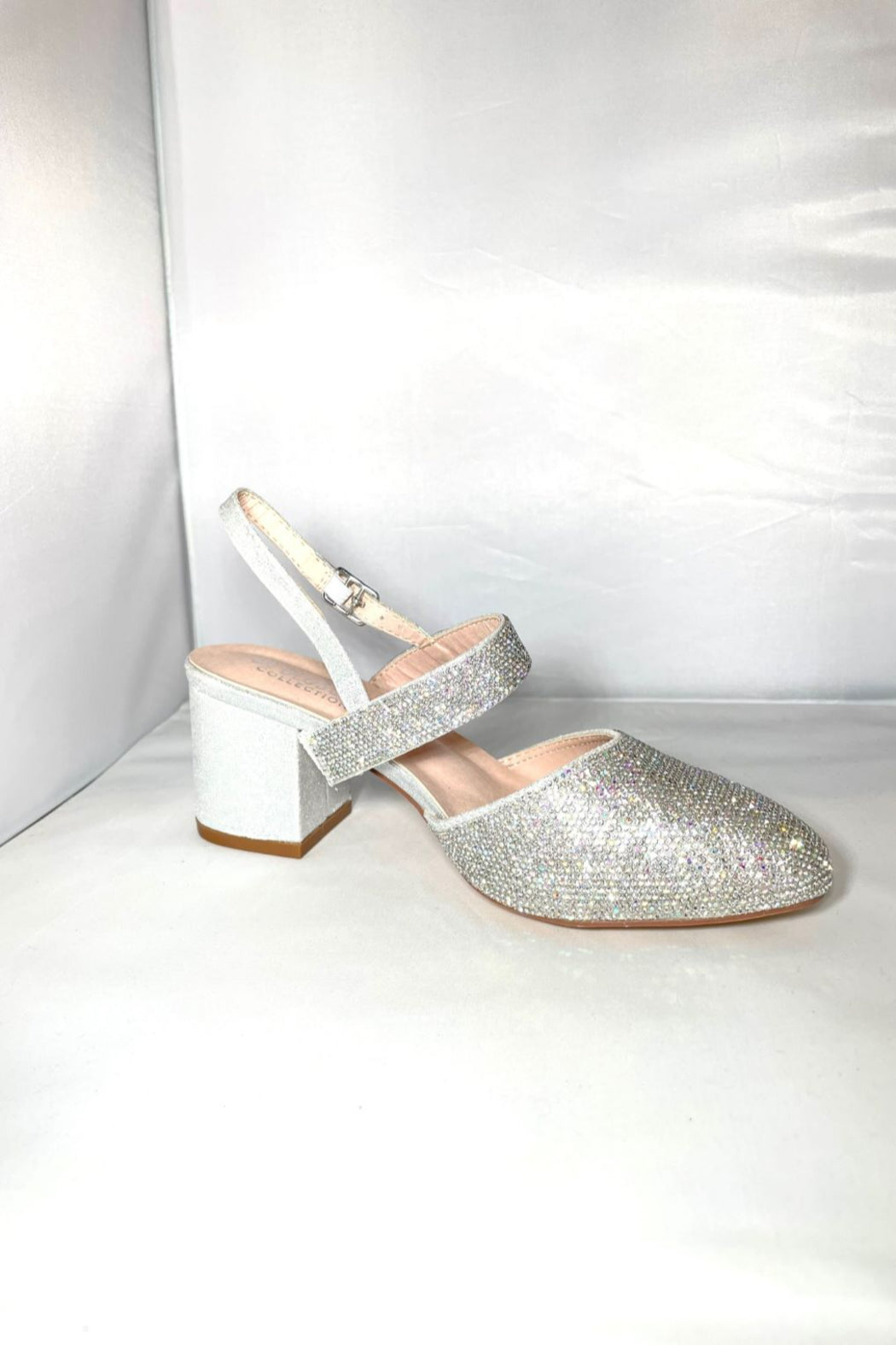 This is a wide width shoe only! The Freya silver shimmer shoe is the perfect closed toe shoe for all the events in your schedule. They feature a 2.5" block heel with and ankle strap for extra support. The also have extra padding in the bottom for all day comfort!