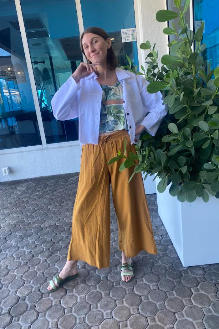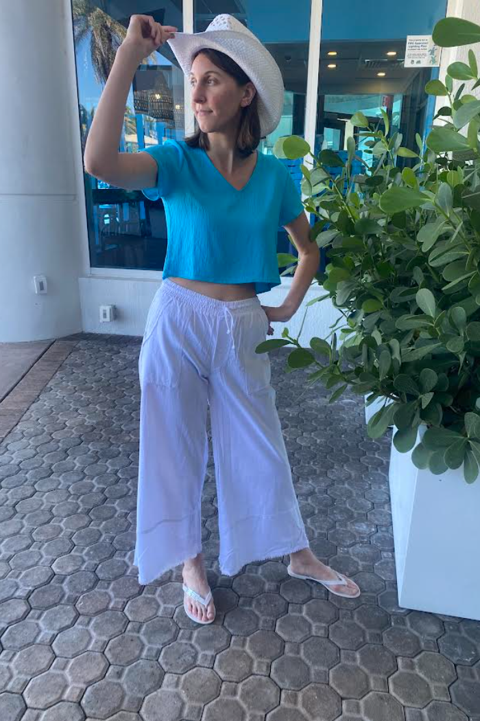 Casual and cool, these 100% cotton pants are the definition of cabana classics. With a draw string elastic waist Lani Lau has created an effortless pant perfect for styling