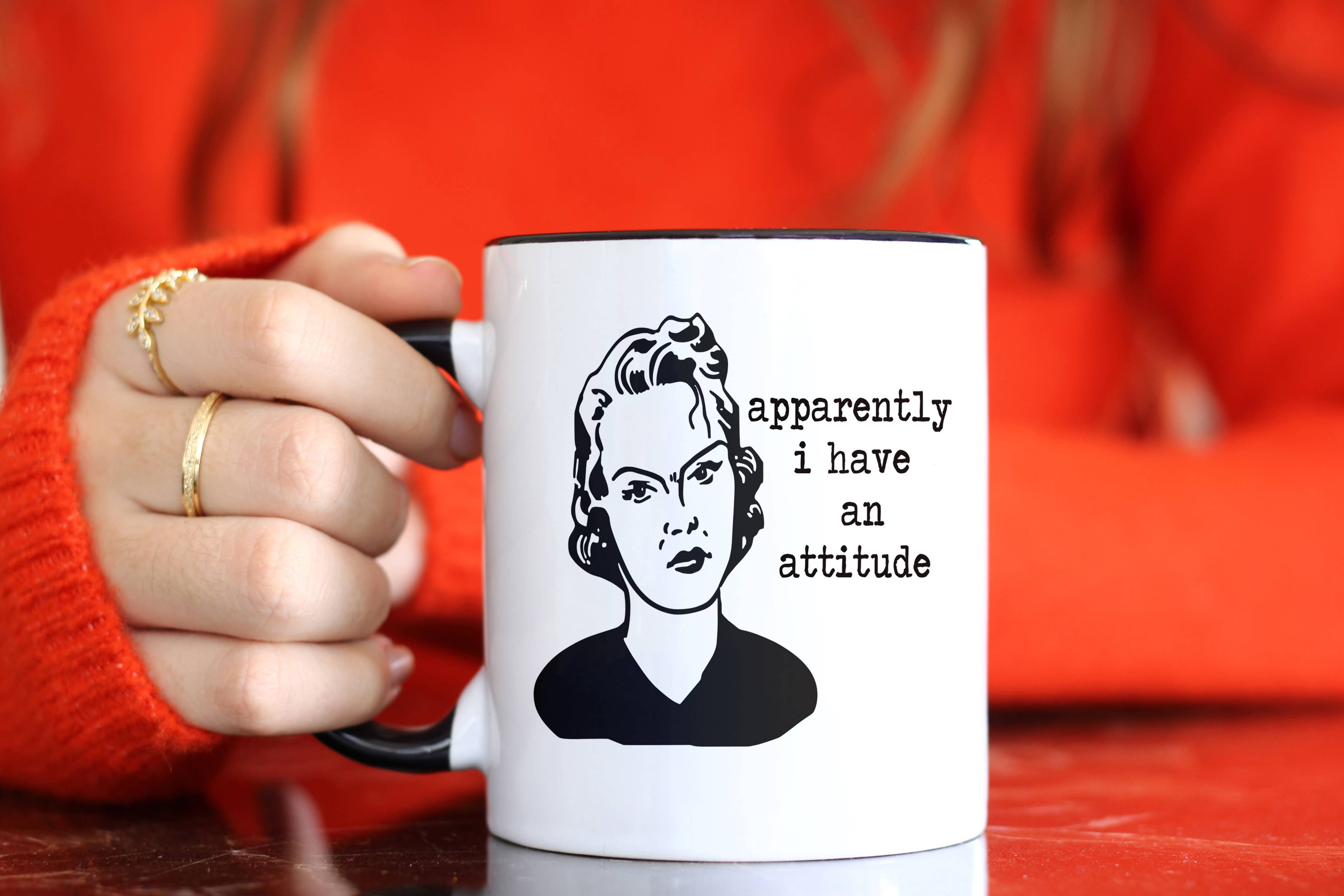 Apparently I have an attitude Capacity: 15oz. Matching colored inside/handle design Ceramic, glossy surface Dishwasher and microwave safe Lead-free Image is sublimated not vinyl. Will not crack, fade or peel