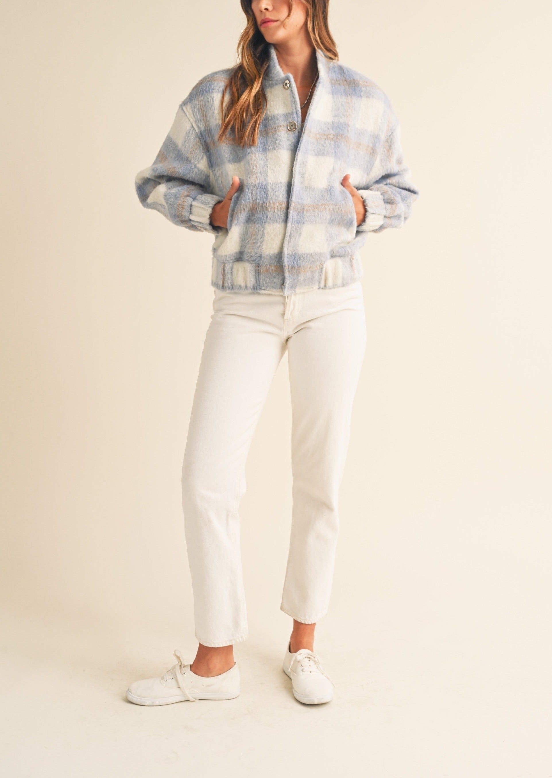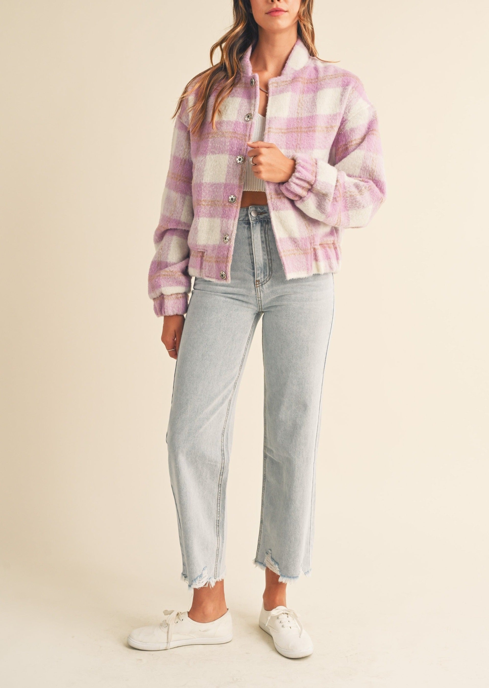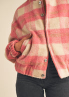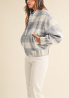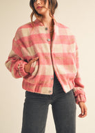 Fuzzy Plaid Bomber Jacket