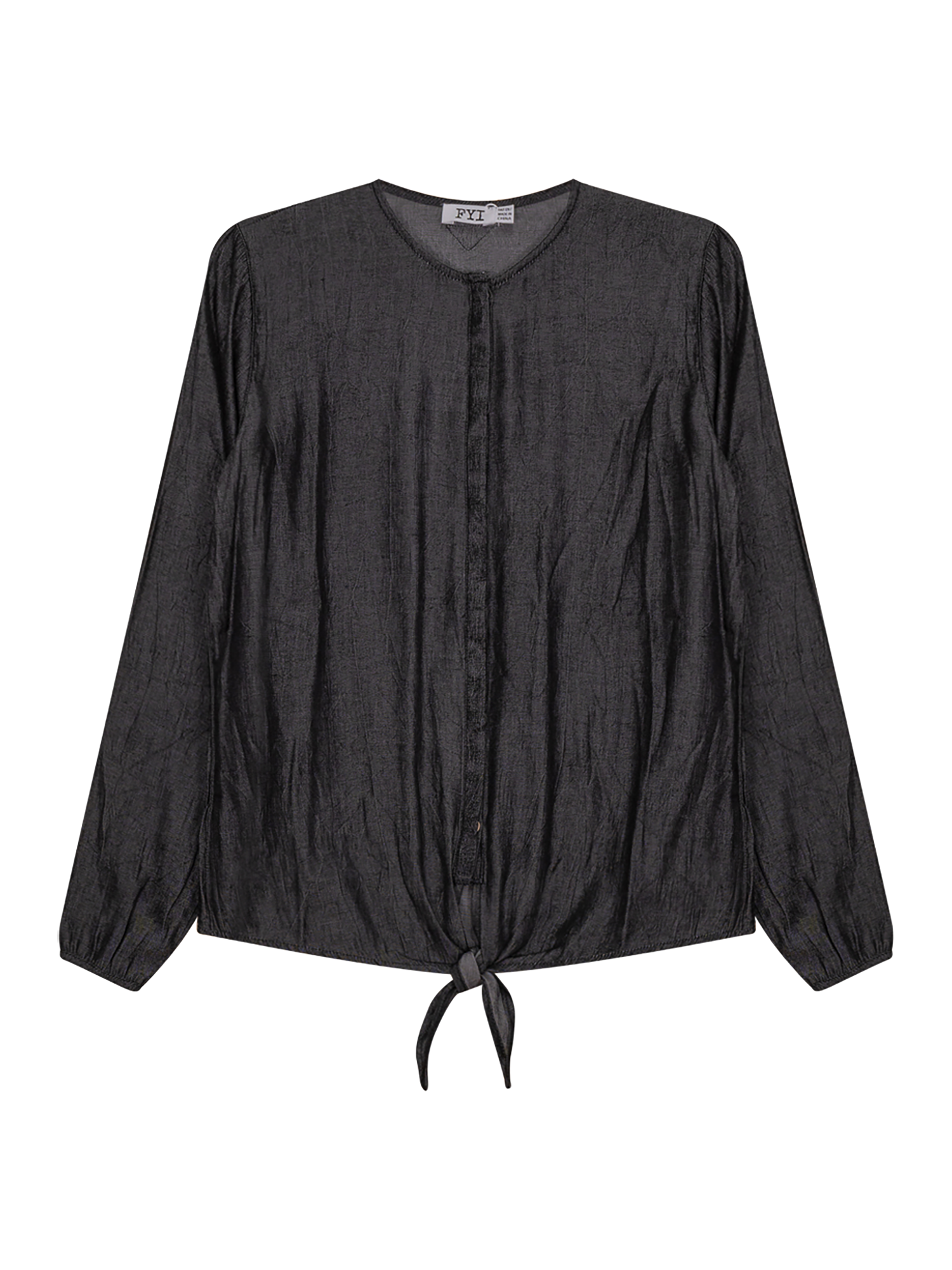What could be better than this FYI relaxed and super soft crinkle blouse with tie bottom, to start off the spring season ? Dropped shoulder and single button sleeve. Looks great worn with denim bottoms or with a patterned soft flowy skirt.