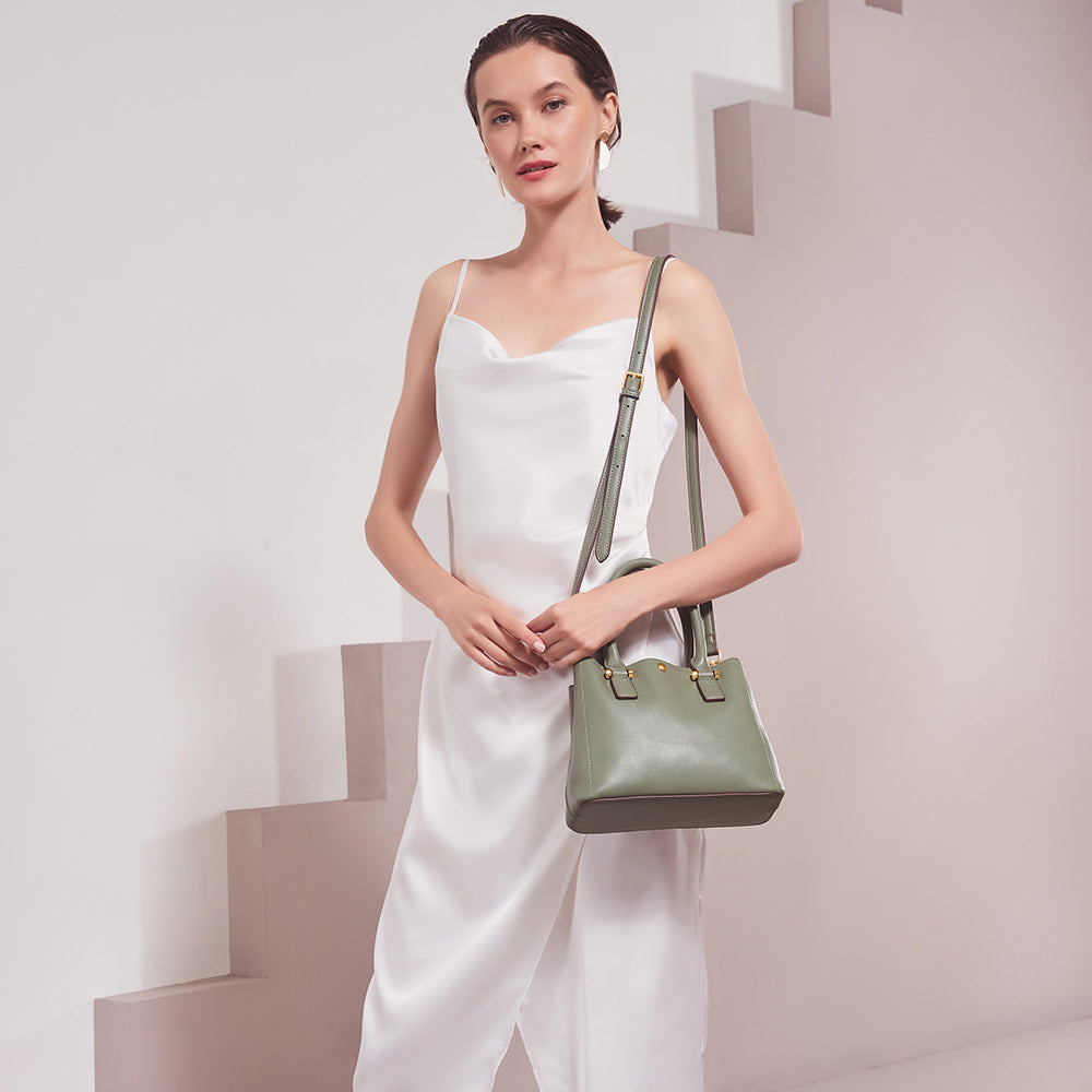 The Gabby is a small shoulder bag with plenty of space to keep all your belongings organized and within reach. Made of smooth vegan leather, this small version of the Gabriella is a perfect companion for those days you want to commute light. Carry from the top handle or use as a crossbody.