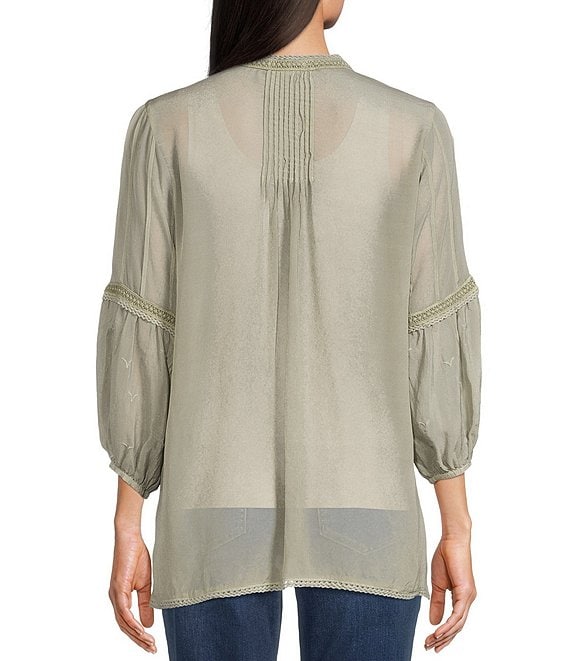 - Features: Embroidery, 3/4 length sleeves, tunic length