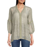 Our Caite and Kyla Gabrielle Blouse is light weight flowy blouse with beautiful tonal embroidery.