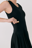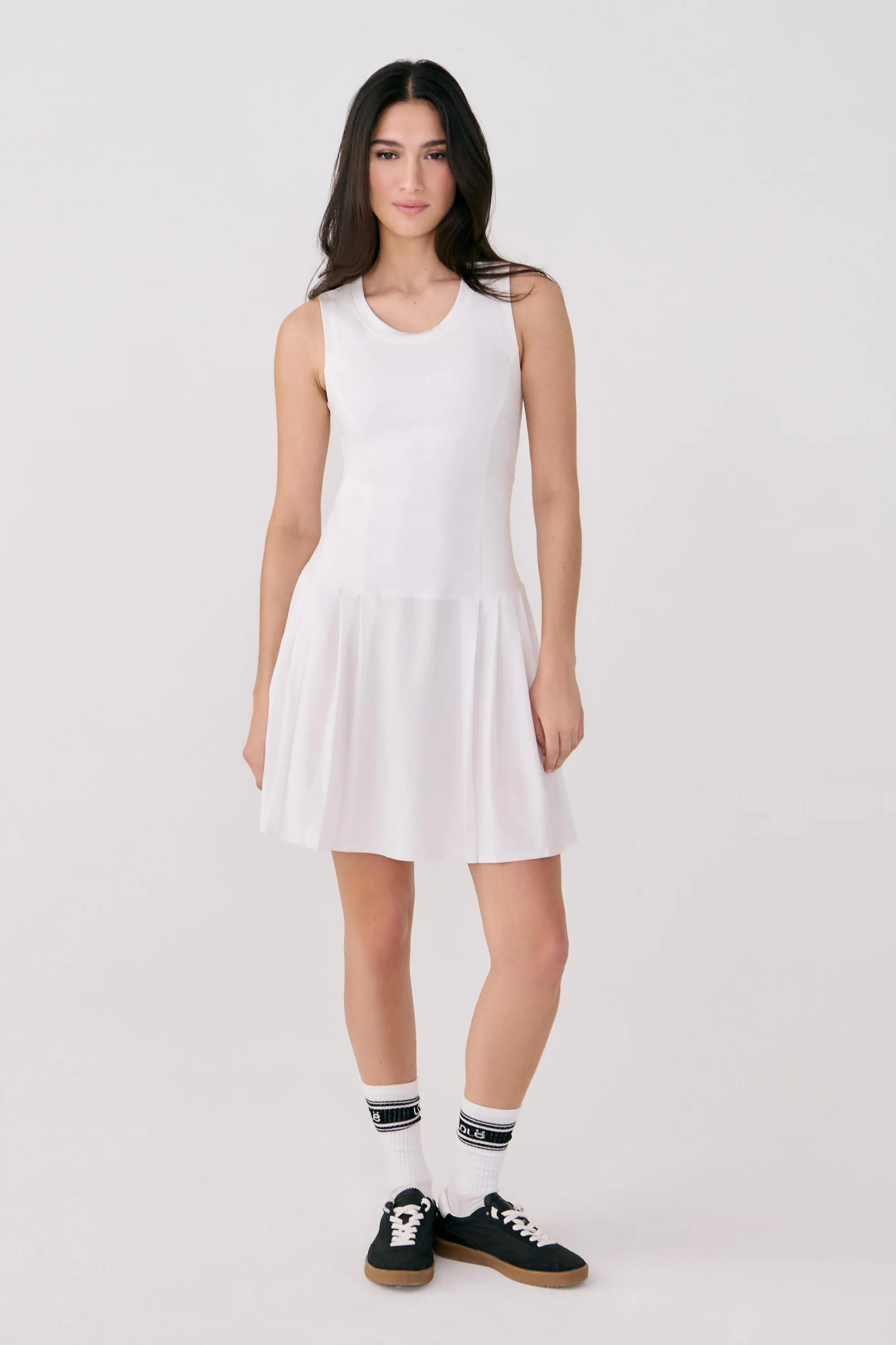 The game-changing dress that follows your every move and looks stylish doing it. The Game Dress features a pleated skirt, two side pockets, and a bonded hem.