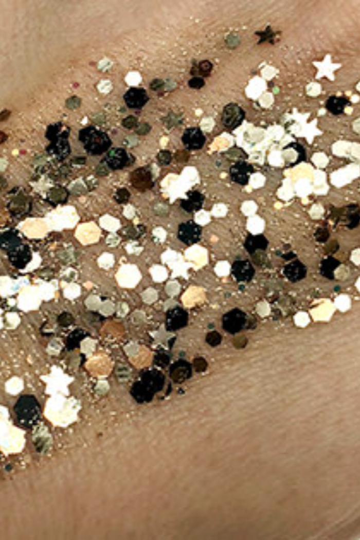 Bolt Balm is easy-on, easy-off glitter that goes on with a quick swipe of a finger or spatula applicator and comes off just as easily with a lint roller or tape.