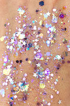 To get the ultimate sparkle, Bolt Balm can be layered over a Body Shimmer or you can dab on additional Elektra Microfine glitter while the gel is still wet.