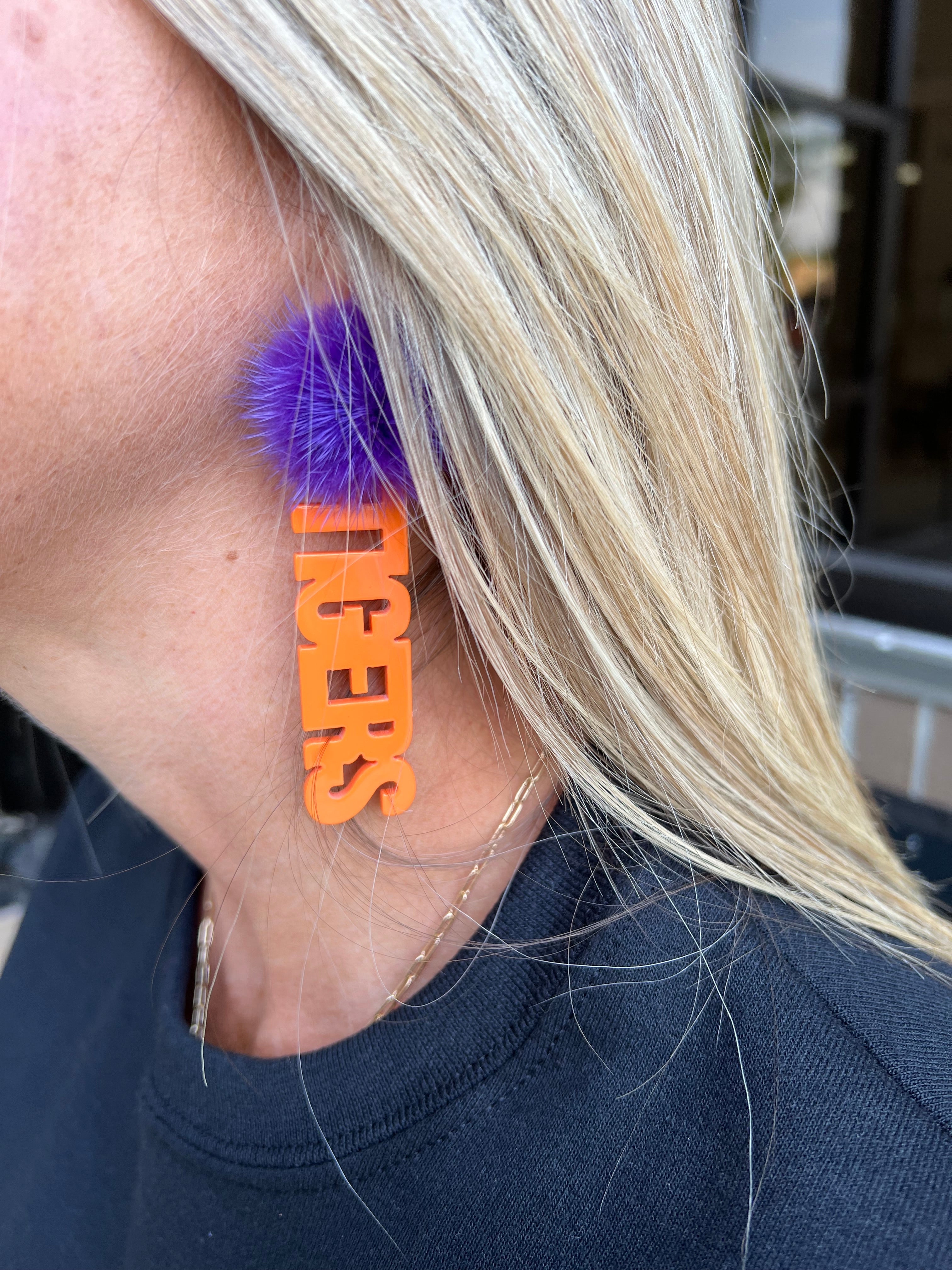 Show your team spirit with these Gameday Tigers Earrings! A perfect combo of orange and purple, these earrings feature a gameday pompom and TIGERS spelled out so you can cheer on your team with style. Go Tigers!!
