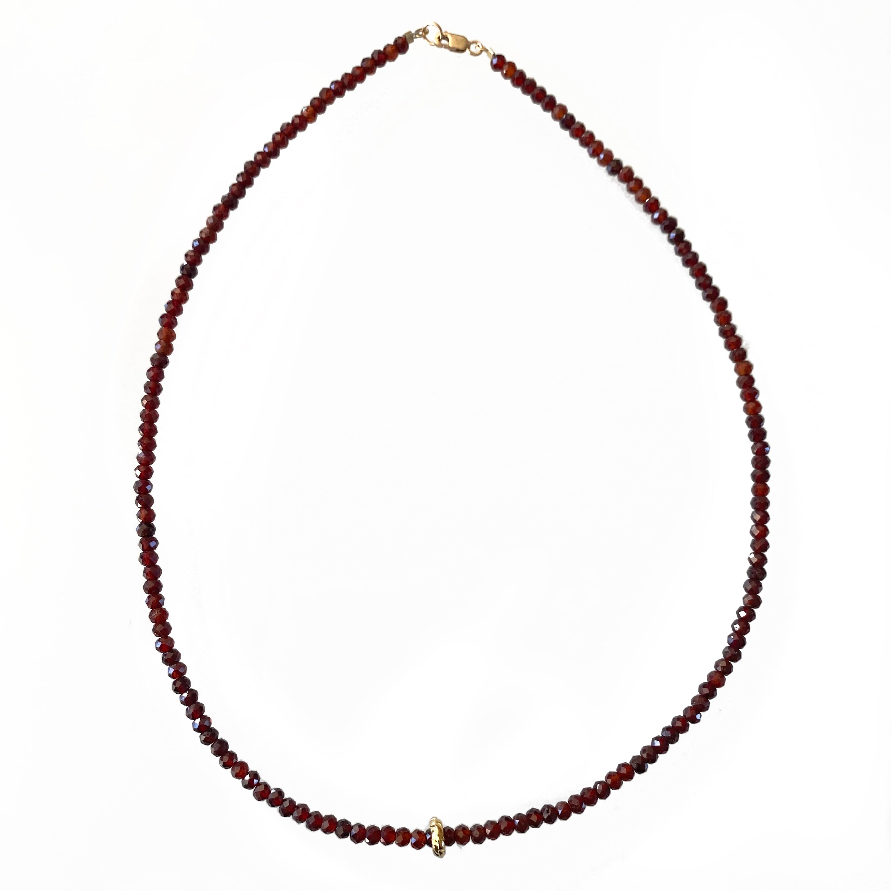 The Garnet Beaded Necklace is a rich, elegant piece that radiates warmth and sophistication. Featuring a full 18-inch strand of deep red garnet beads, this necklace adds a touch of timeless beauty to any outfit. Perfect for layering or wearing solo, it’s a versatile accessory that effortlessly transitions from day to night.