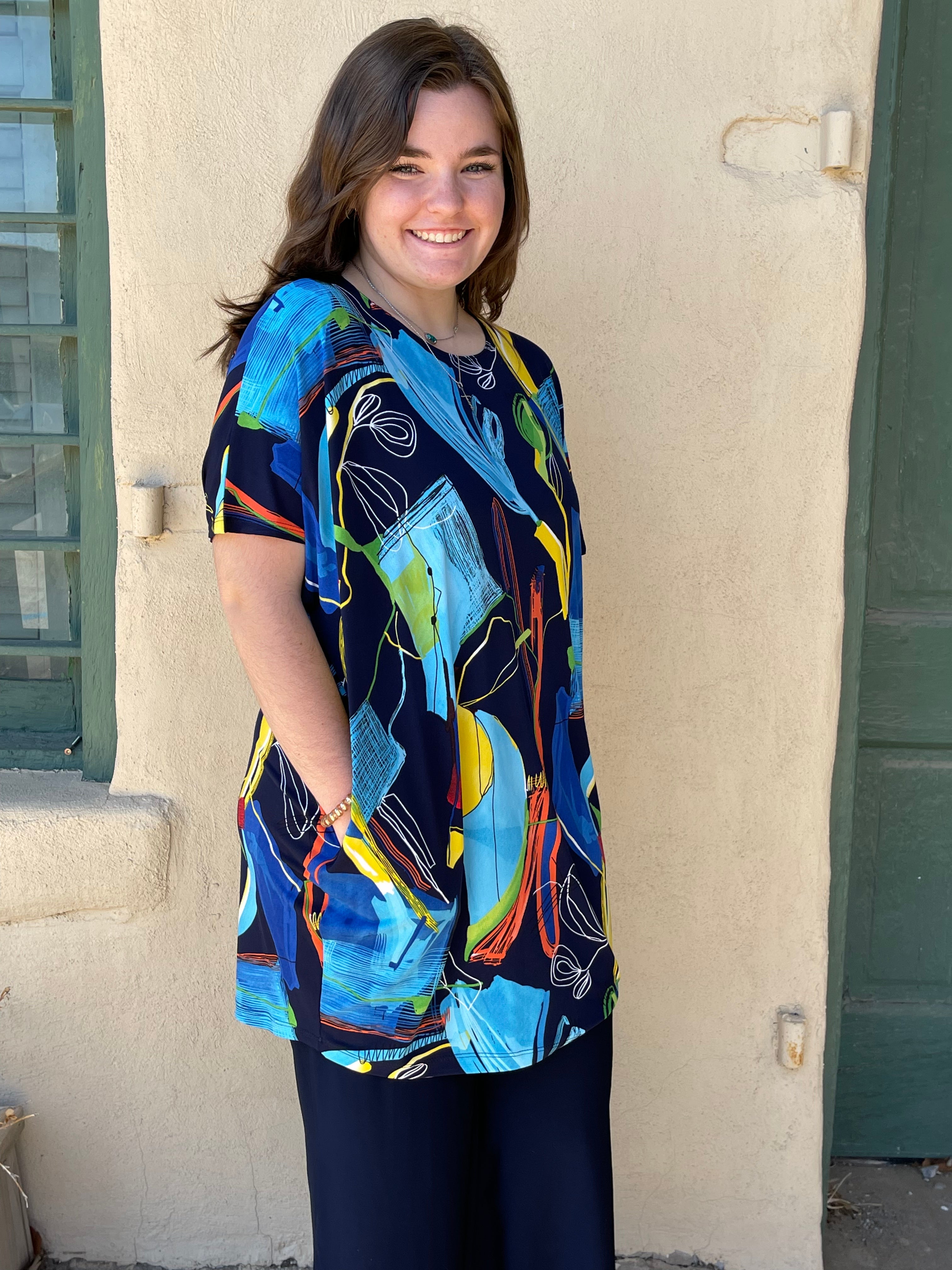 The Gemma Deep Sea Tunic by Artex Fashions is the perfect blend of fashion and comfort. Its exclusive Artex sea-inspired print makes it perfect for a day at the beach or dinner on a patio. Offered with a belt around the waist, it provides structure and shape to finish any look.