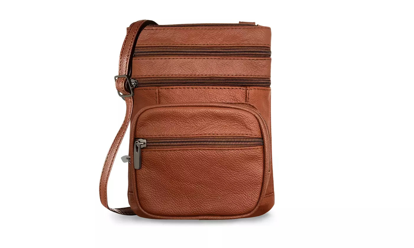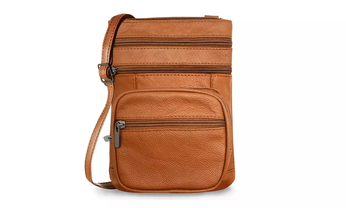 This crossbody will be your go-to bag for all occasions. Made of genuine leather this bag features a zipper front compartment, 2 zippers across the front of the bag, a top zipper for full bag access, and a back zippered pocket.