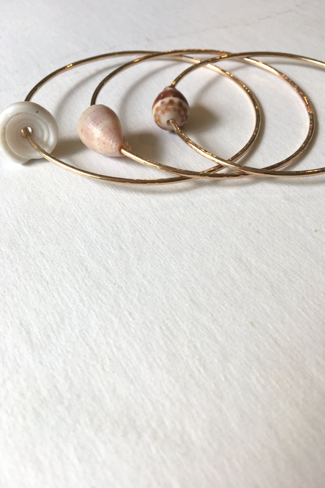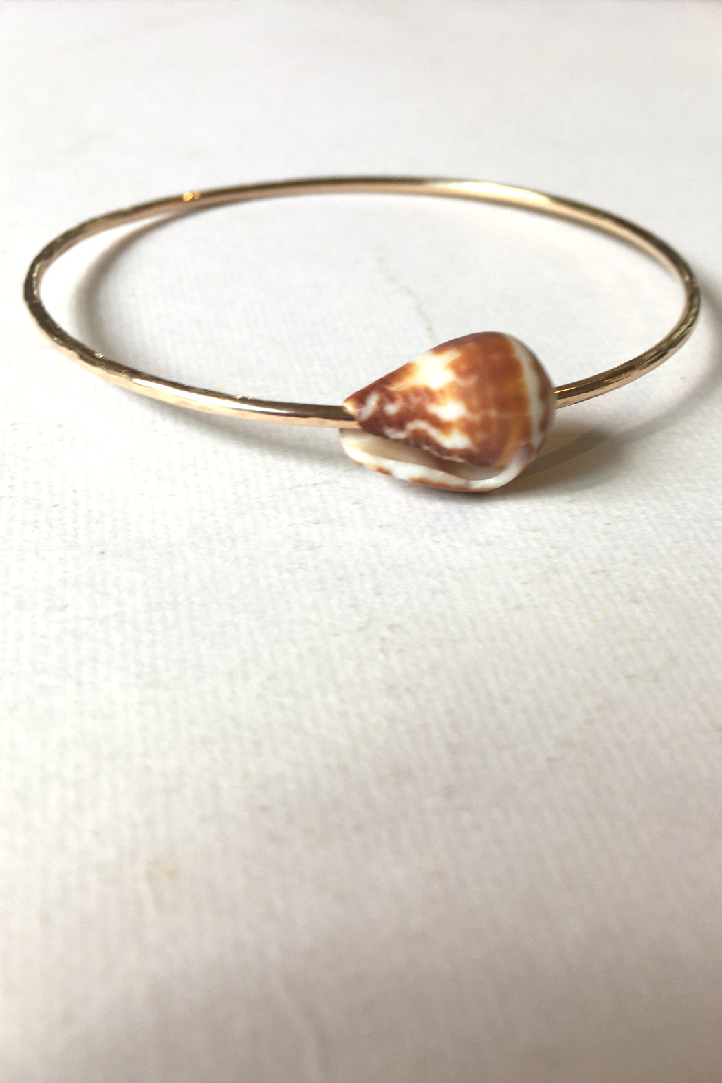 14K gold filled thick gauge bangle with hand selected Maui Shell. Made in Maui by Upcountry designer. Hand-hammered. Great bangle on it's own or stack with other Maui bangles. A great keepsake memento or gift to someone special.