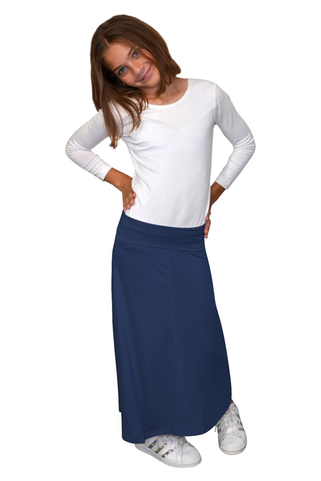 Maxi A-line skirt. Four panel skirt. Comfortable 4" waistband. Lightweight flowing fabric. Flat stitch trim on all seams. Machine washable.
