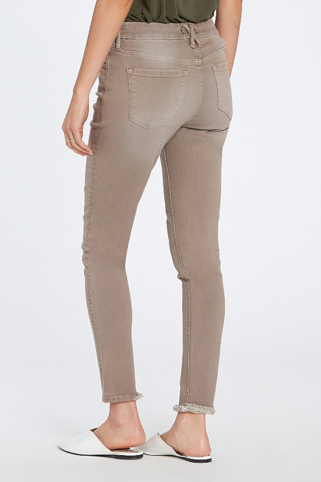 Dear John's comfortable Gisele jean in new Hazelwood color. Details include grinded hem and zip fly.