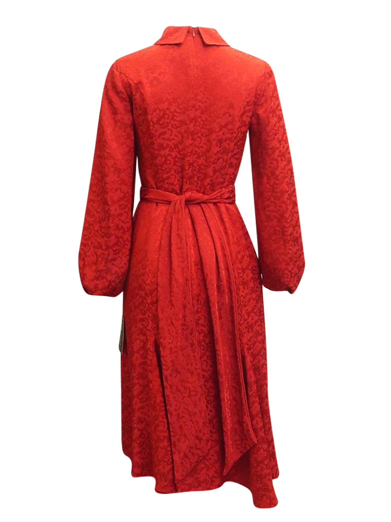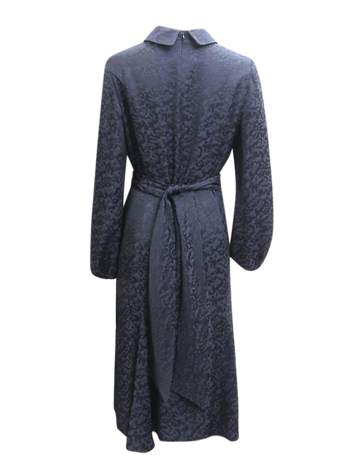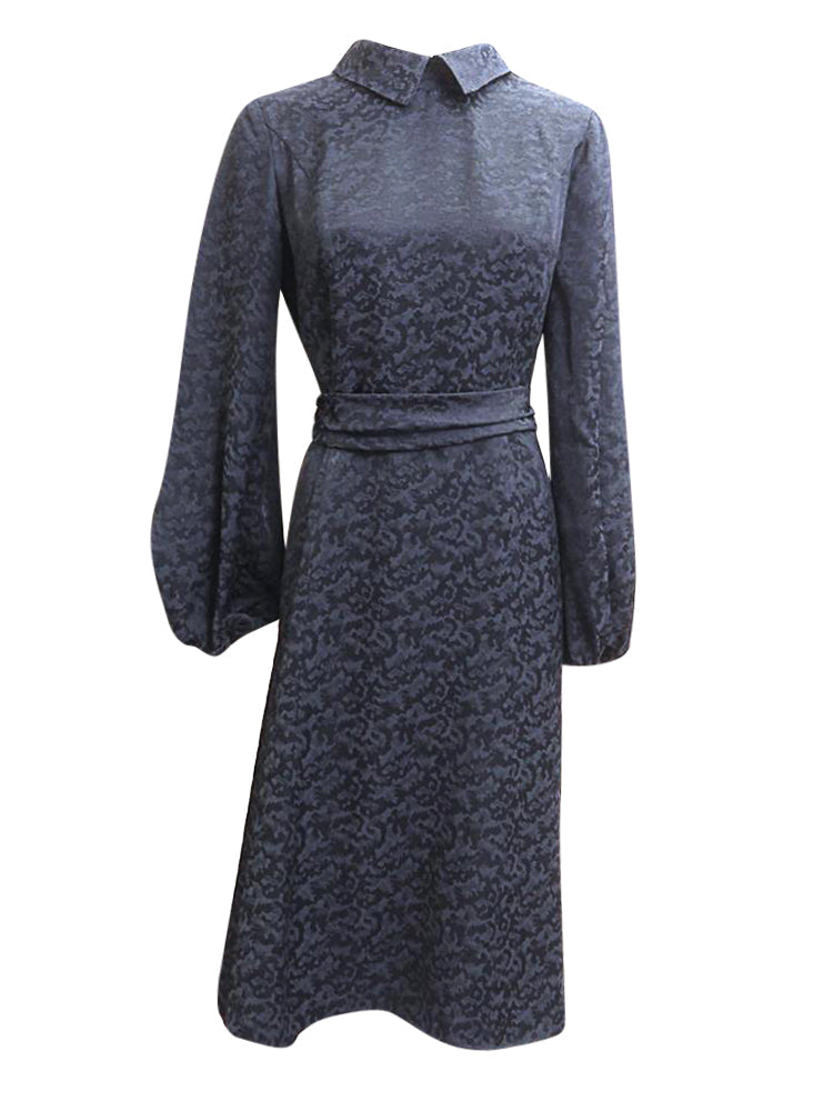 Stunning collared fully lined dress, embossed shiny fabric with matching belt